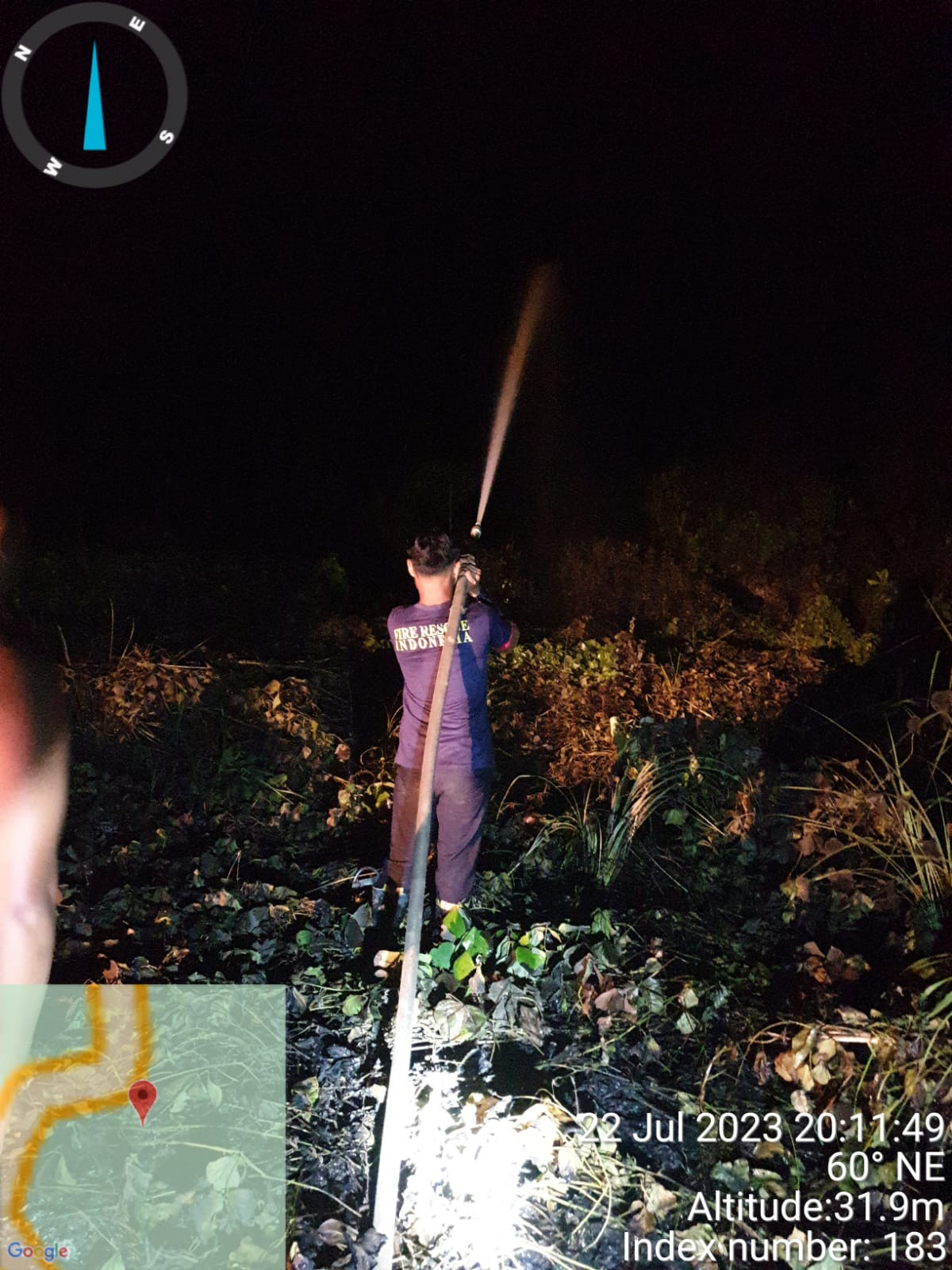 Bengkalis,Telah terjadi kebakaran lahan dan hutan (karhutla) pukul 19:45 Wib (22/07/23) di Desa Tengganau Rt 02/Rw 04, Kelurahan/Desa Tengganau, Kecamatan Pinggir. Penyebab kebakaran belum diketahui pasti namun luas wilayah hutan dan lahan yang terdampak diperkirakan sekitar -/+1 ha Tim yang turun dalam kejadian tersebut Anggota D regu 4, Security PHR dan Masyarakat.