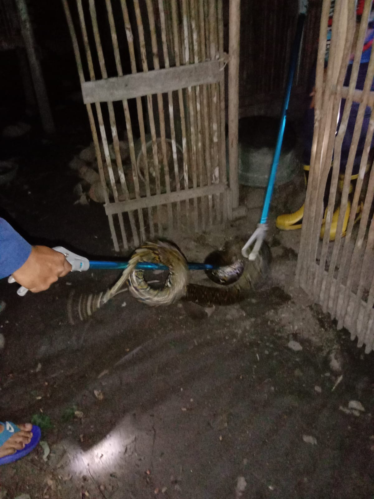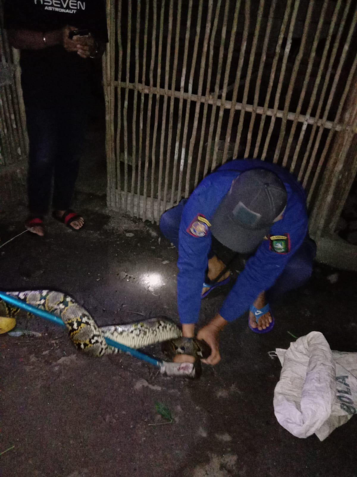 Minggu (17/04/2022) Pukul 21.30 Wib, Pos Damkar Bengkalis mengevakuasi seekor ular sawa di Jalan Desa Sungai Alam, Kecamatan Bengkalis Kabupaten Bengkalis. Petugas Damkar yang telah menerima laporan langsung melakukan evakuasi, tim yang turun dalam kejadian Fire & Rescue Regu 03 Bengkalis, Kapos bengkalis Zulkarnaen, Danru Suryadi dan Ketua Regu Fitri Agus.
