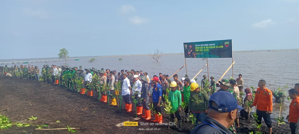 Bengkalis - DinasPemadam Kebakaran (Damkar) mengikuti acara aksi tanam bibit pohon magrove di jalan utama Delok, Desa Delok Kecamatan Bantan (21/2/24). Gerakan tanam pohon ini dilakukan dalam rangka menjaga ekosistem di lautan pinggir sungai.