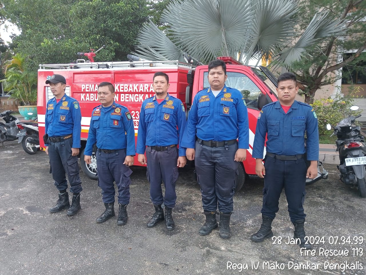 Bengkalis - Giat piket petugas Keamanan pemadam kebakaran (Damkar) disiagakan di gudang penyimpanan logistik KPU di Kota Bengkalis (28/1/24) yang beralamat di gedung LAM Kabupaten Bengkalis.
