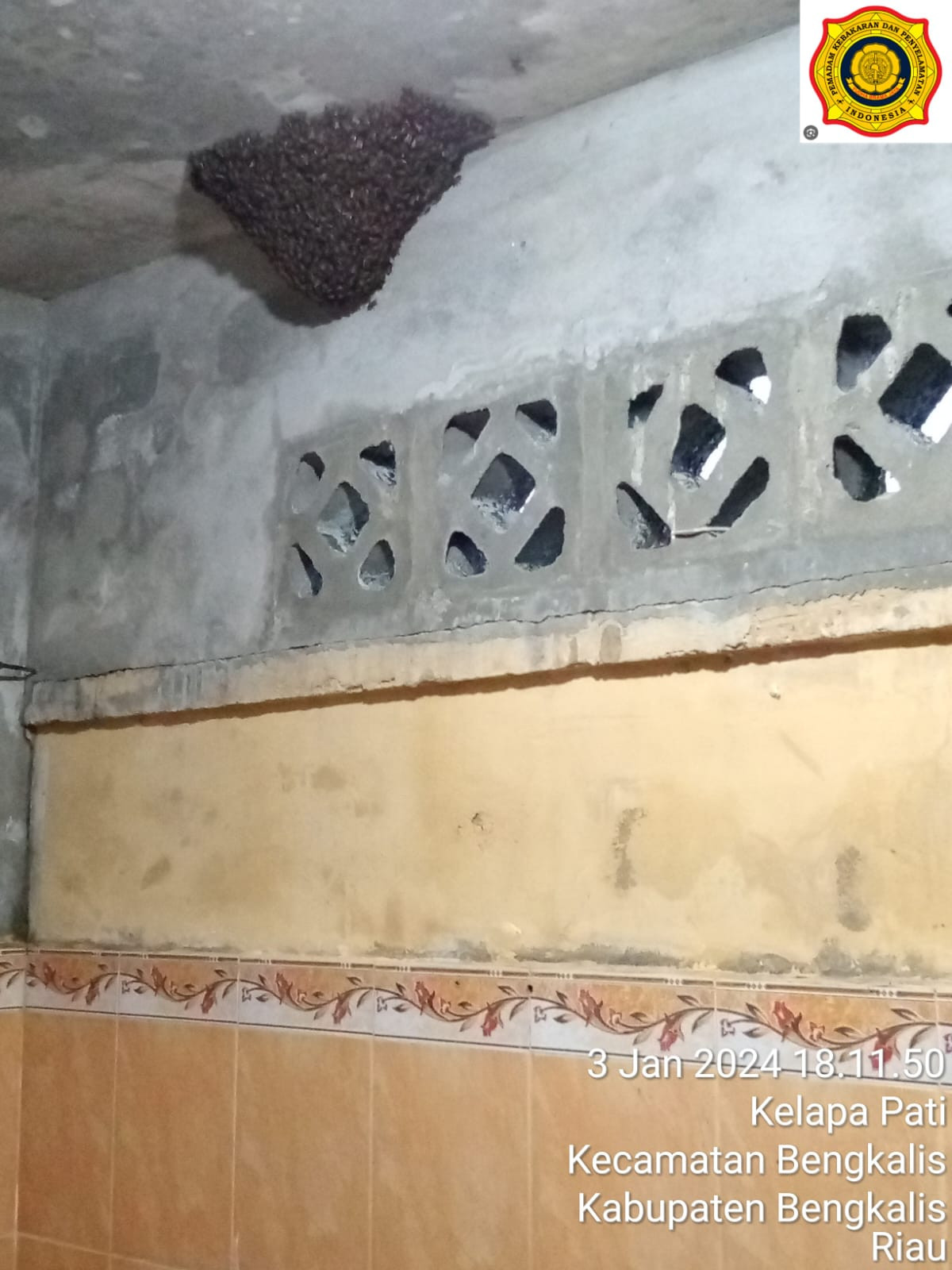Bengkalis - Petugas Piket Fire & Rescue Regu 01 Bengkalis mendapat laporan adanya sarang tawon di lingkungan rumah warga (jon) yang beralamat Kelurahan Desa Wonosari Kecamatan Bengkalis (3/1/24). Tim yang turun dalam kejadian tersebut Fire & Rescue Regu 01 Bengkalis.