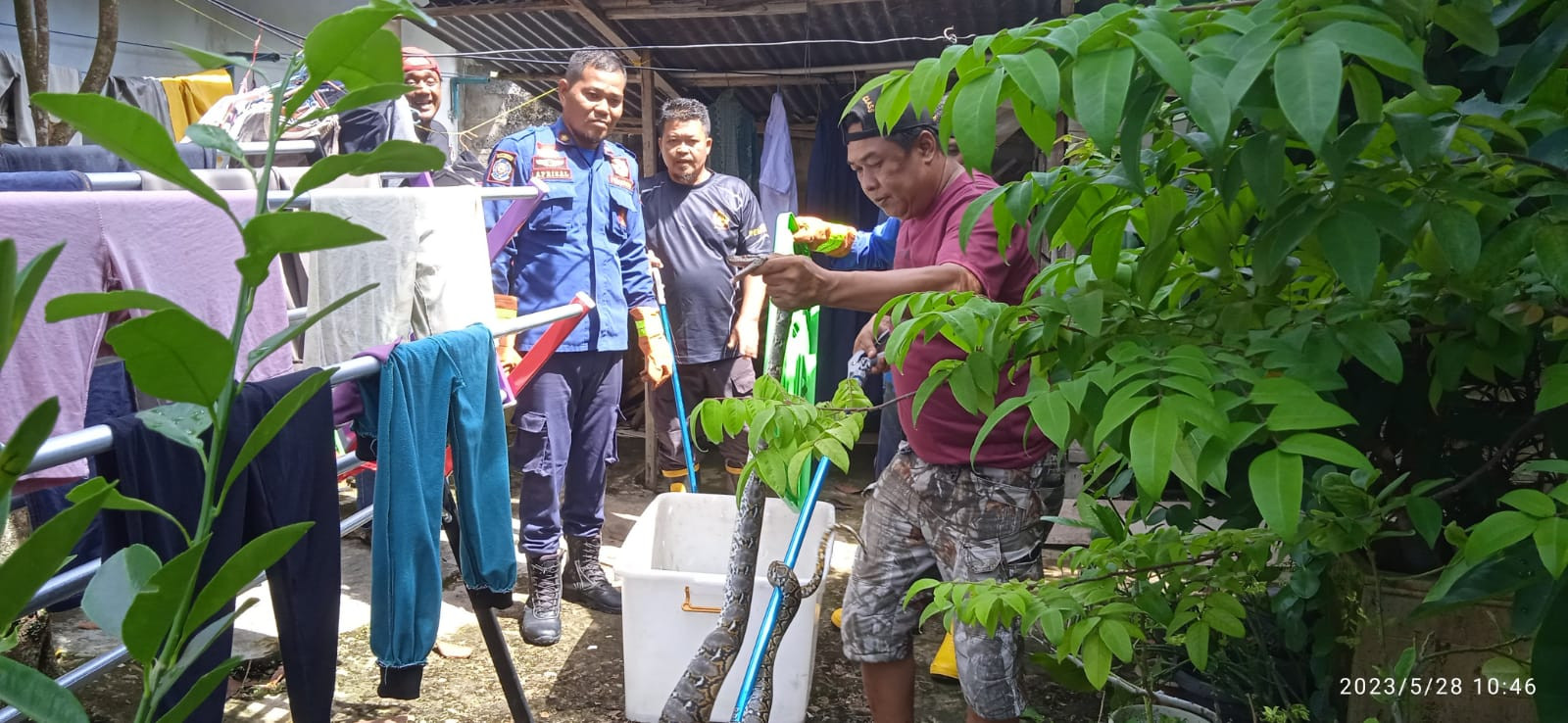 Bengkalis, Giat Mako Damkar Bengkalis melakukan evakuasi Ular Sawa (28/05/23) pukul 10:40 Wib di jalan Air Putih GG. Tanjung, Desa Air Putih Kecamatan Bengkalis. Tim yang turun dalam kejadian tersebut Fire & Rescue Regu 03 Bengkalis.