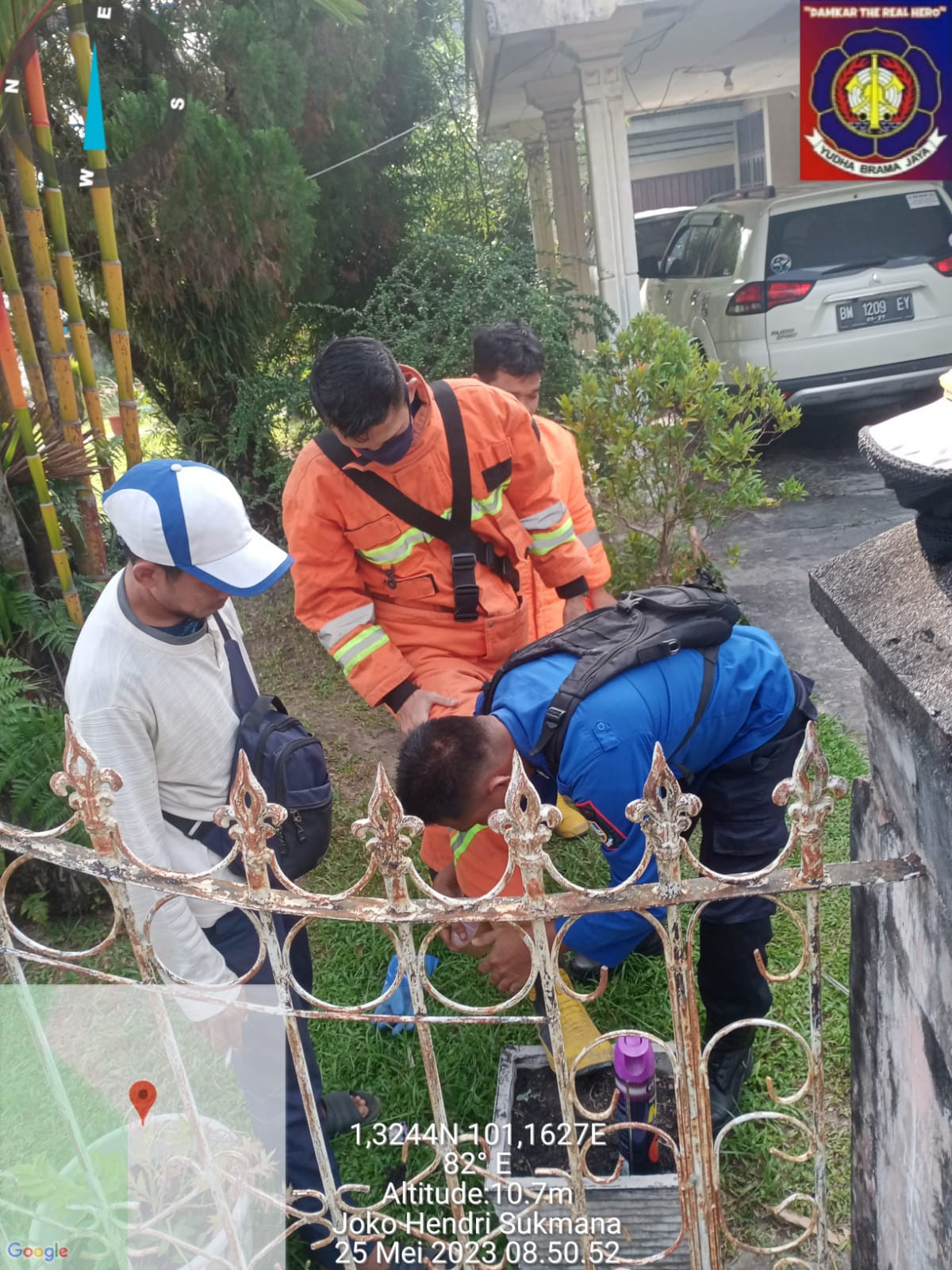 Bengkalis, Giat anggota damkar Upt Damkar Kecamatan Mandau melakukan evakuasi tawon vespa (25/05/23) pukul 08:30 Wib di jalan Desa Harapan Gg Matahari no 1 Rt 03/Rw 05, Kelurahan Air jamban, Kecamatan mandau.Tim yang turun dalam kejadian tersebut Danru Joko Anggota regu 03.
