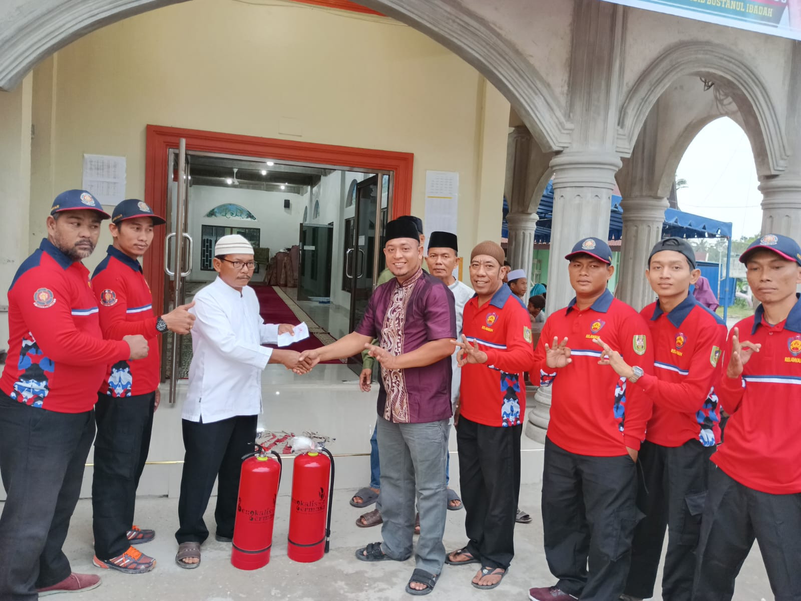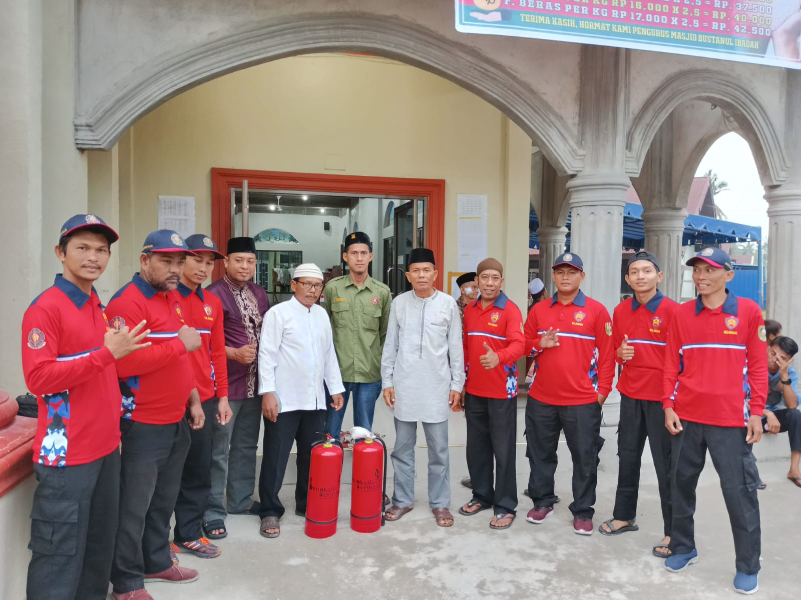 Giat Damkar Mandau mendampingi Redkar Kecamatan Mandau penyerahan 2 tabung apar ukuran 9 kg 2 unit untuk Masjid dan menyerahkan sumbang untuk Masjid.