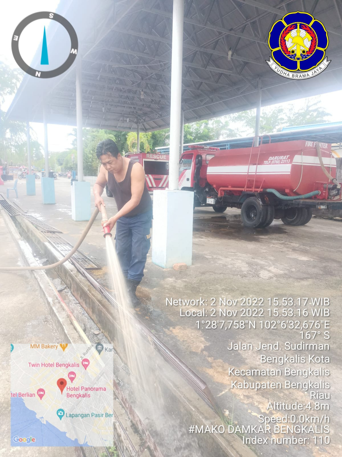 Rabu (02/11/2022) Pukul 15.50Wib, Pos damkar bengkalis melakukan pemeliharaan alat-alat armada & pembersihan lingkungan Mako Damkar Bengkalis.