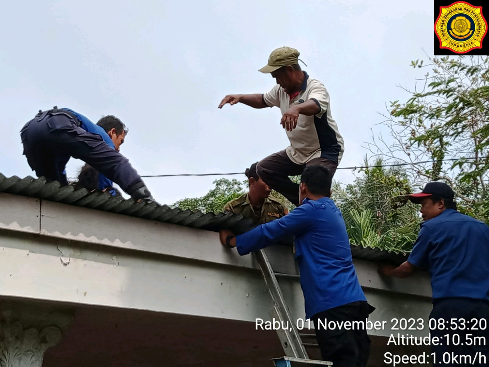 Bengkalis (1/11/2023) Giat Mako Damkar Bengkalis melakukan Penyelamatan Korban di atas genteng rumah di jalan Kelapapati Tengah Gg Iklhas, Desa Kelapapati. Petugas Damkar yang telah menerima laporan langsung melakukan evakuasi, tim yang turun dalam kejadian tersebut Fire & Rescue Regu 04 Bengkalis.