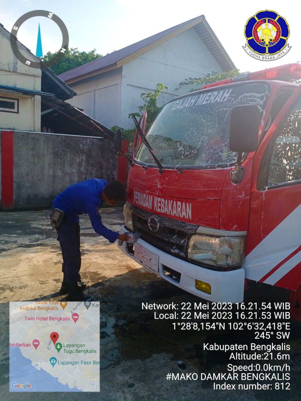 Bengkalis, MAKO Damkar Bengkalis melakukan pemeliharaan alat-alat, armada & pembersihan mobil pto & lingkungan Mako Damkar bengkalis (22/05) pukul 16:45 Wib.