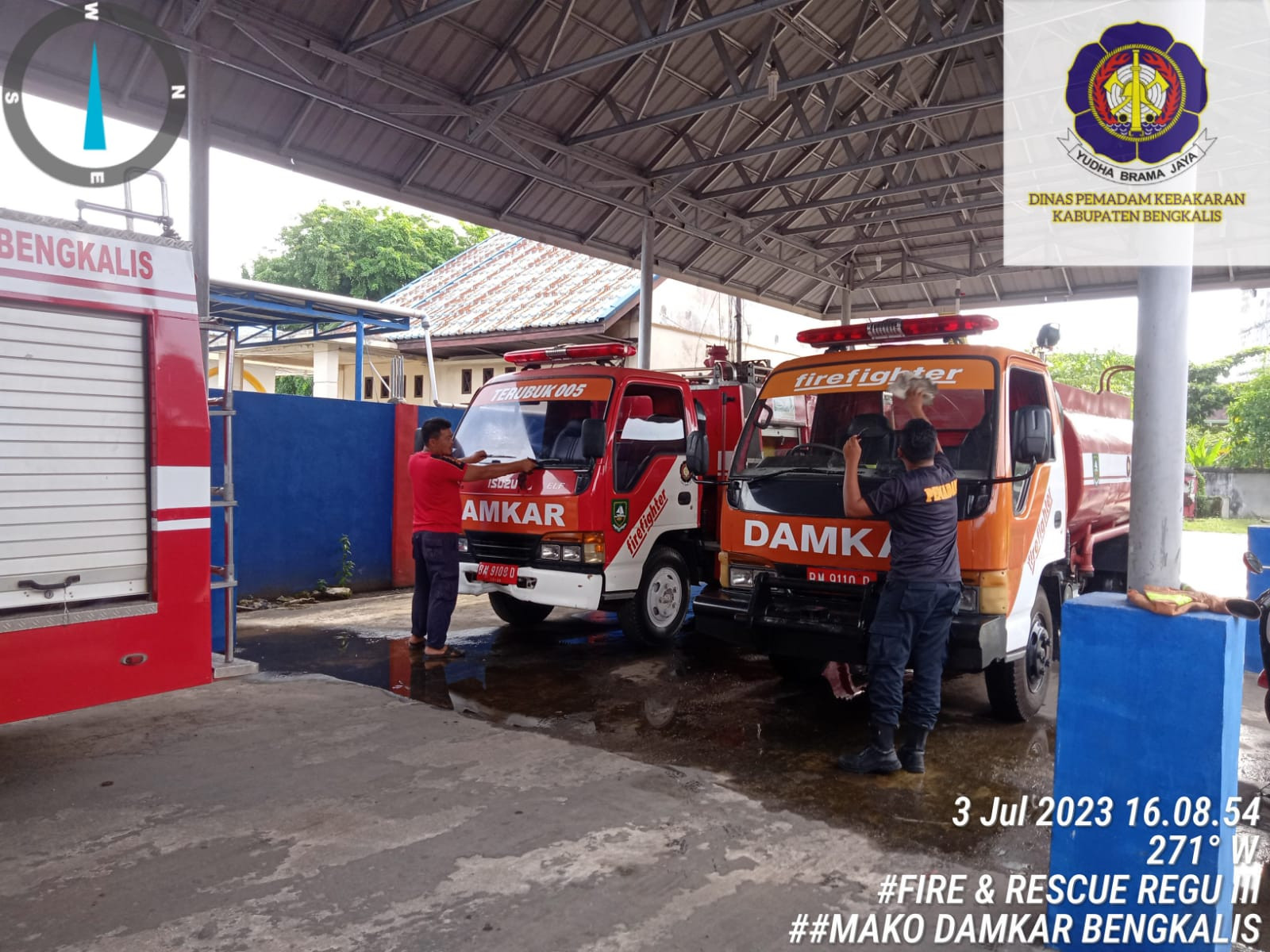 Bengkalis, Giat Mako Damkar Bengkalis melakukan Pemeliharaan alat-alat armada dan Pembersihan Lingkungan Mako Damkar Bengkalis (03/07/23) pukul 16:00 Wib.