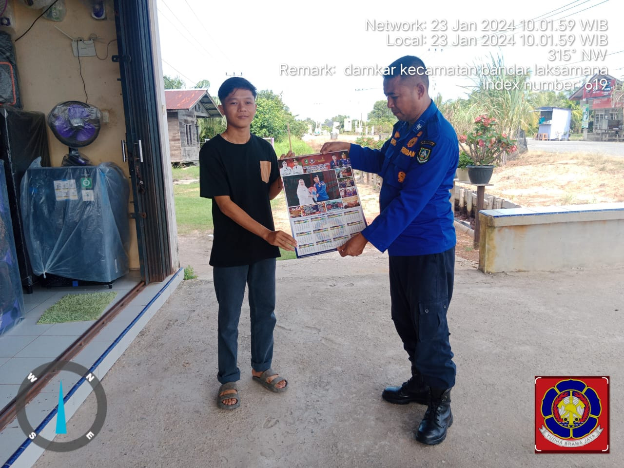 Bengkalis - ( 23/1/24) Giat Pos Damkar Kecamatan Bandar laksamana melakukan Pembagian kalender kepada masyarakat kecamatan Bandar Laksamana.