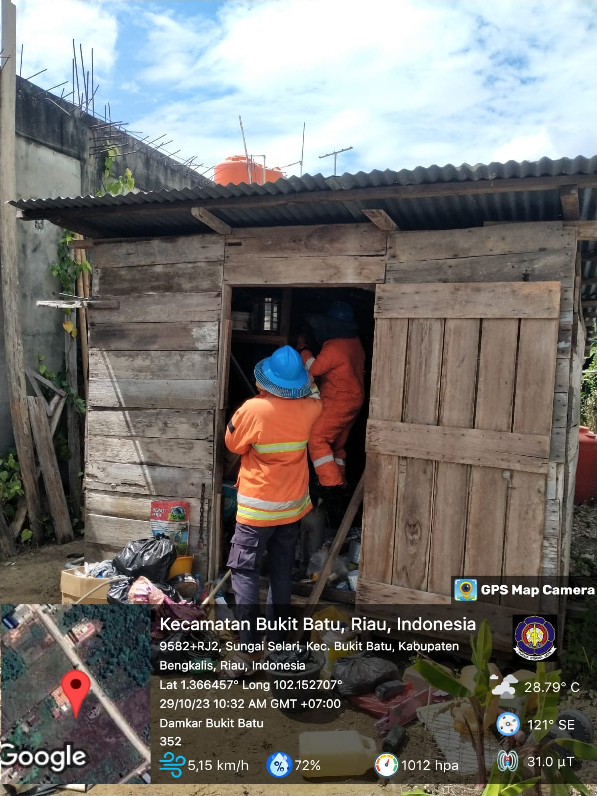 Begkalis, (29/10/2023) Upt Damkar Kecamatan Bukit Batu melakukan evakuasi sarang lebah yang beralamat di Sungai Selari Kecamatan Bukit Batu. Tim yang turun dalam kejadian tersebut Anggota regu 02.