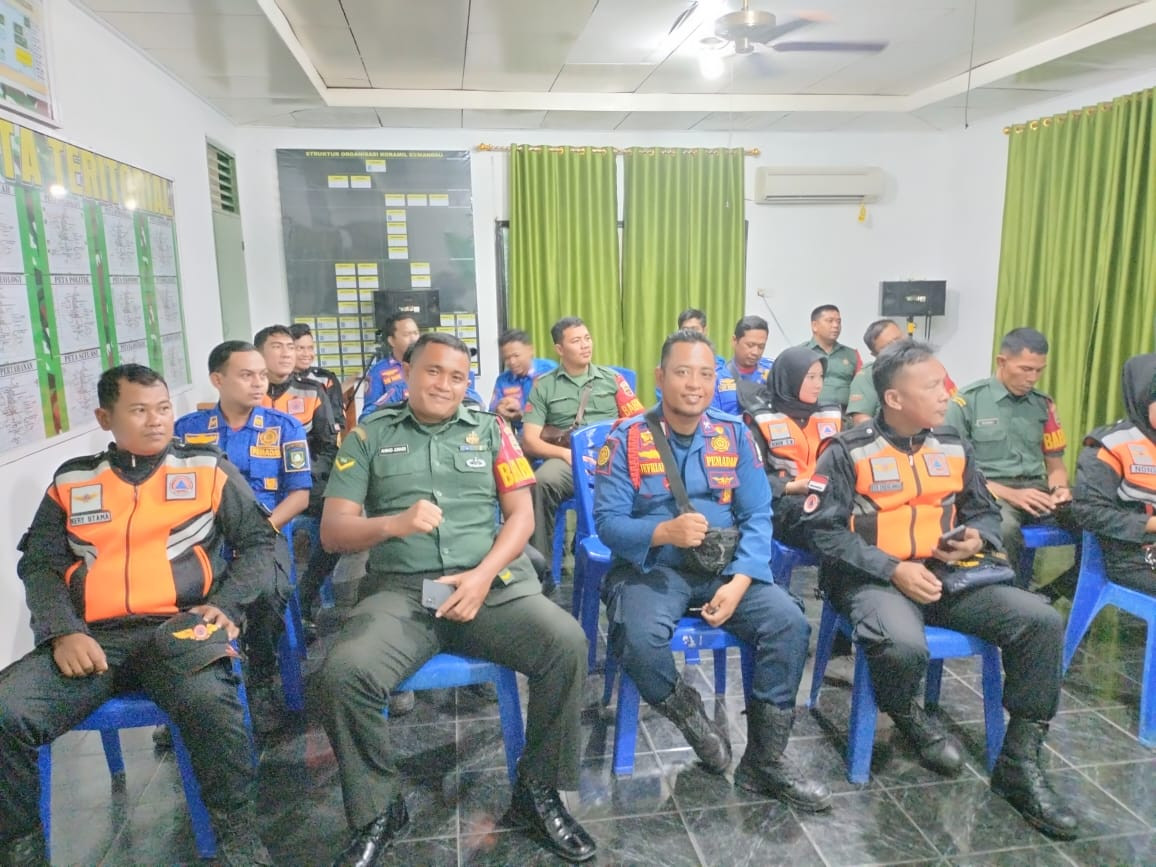 Bengkalis, (31/08/23) Giat UPT Damkar Mandau memenuhi undangan Danramil kecamatan Mandau dalam Pembinaan masyarakat tanggap bencana di kantor Koramil Mandau tim yang turun dalam kejadian tersebut Danru jefrianto Anggota regu 02.