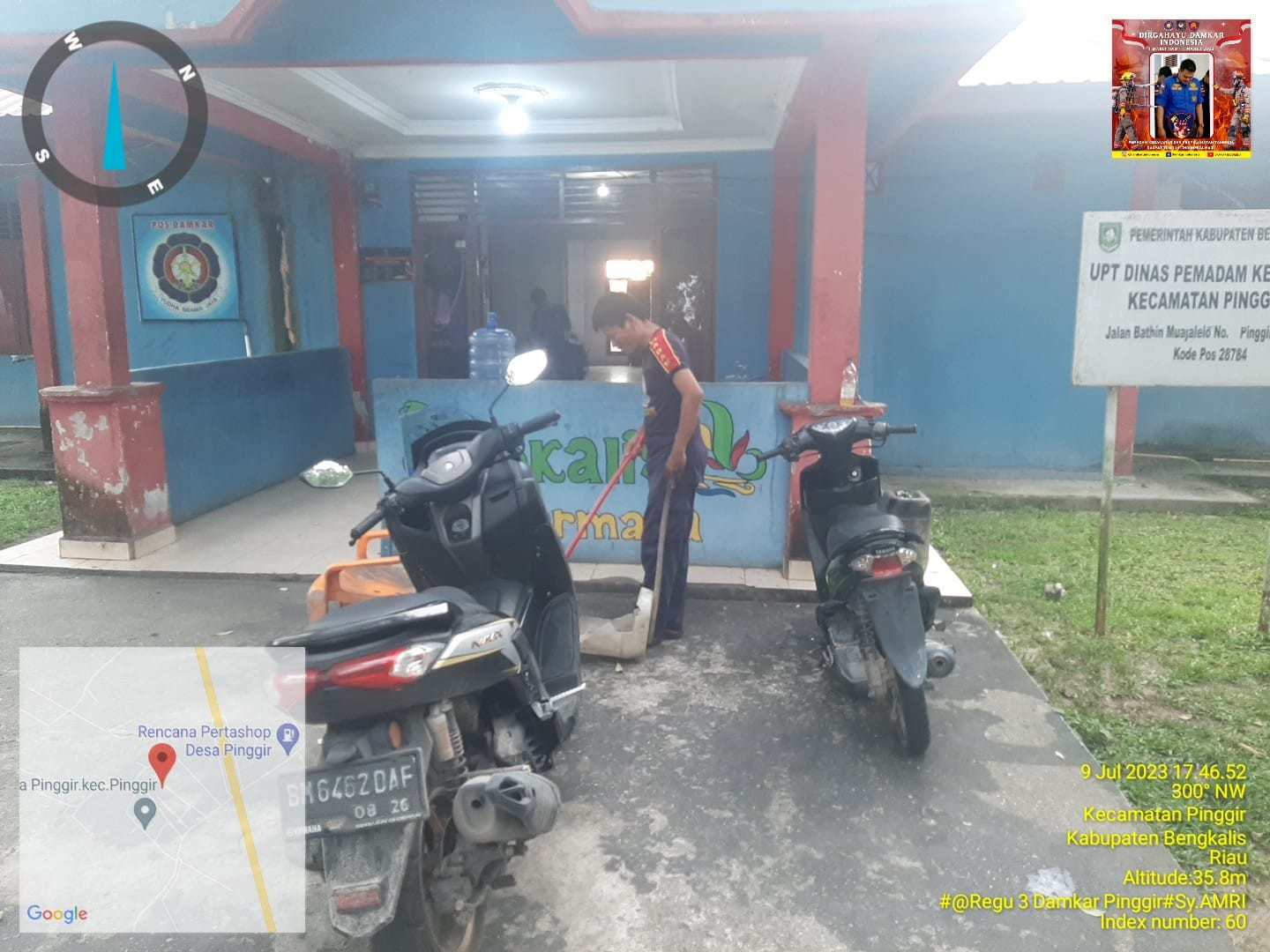 Bengkalis, Upt Damkar Kecamatan Pinggir melakukan bersih-bersih perkarangan kantor Upt Damkar Kecamatan Pinggir (09/07/23) pukul 17:00 Wib. Tim yang turun dalam kejadian tersebut Regu 04 Hendrizal.