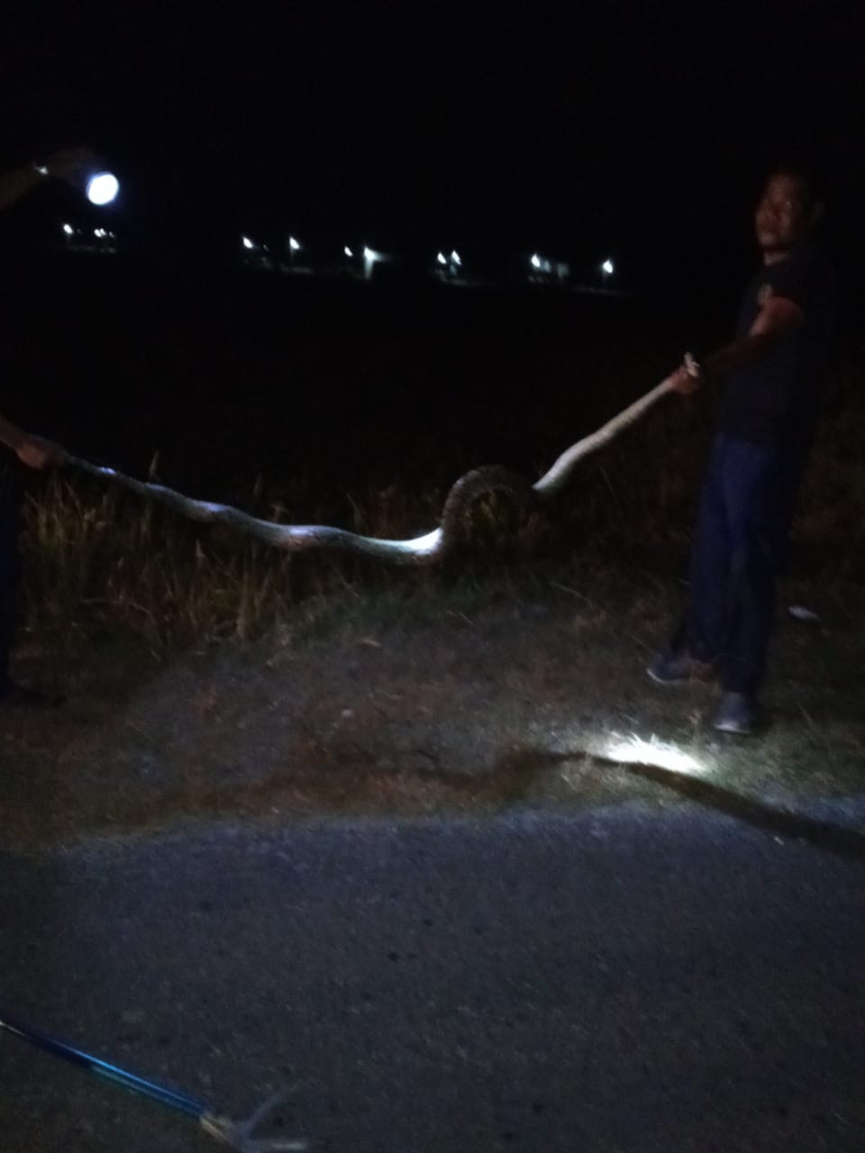 Giat Mako Damkar Bengkalis Evakuasi Ular Sawa di Kelapapati Laut Desa Kelapapati Kecamatan Bengkalis