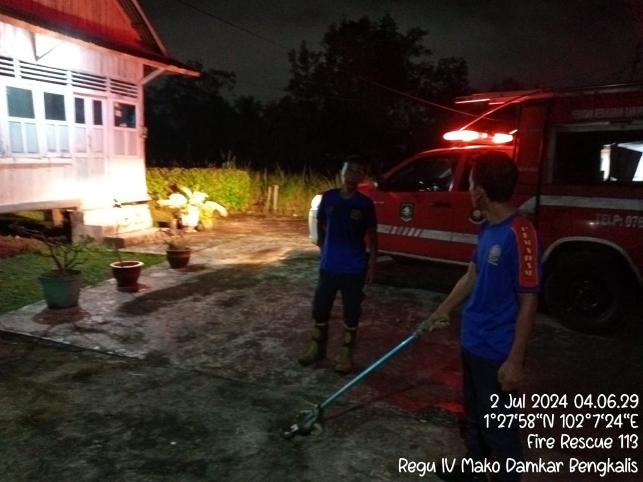 Petugas yang menerima laporan langsung menuju lokasi kejadian untuk melakukan evakuasi, tim yang turun dalam kejadian tersebut Fire Rescue Regu 04 Mako Bengkalis.