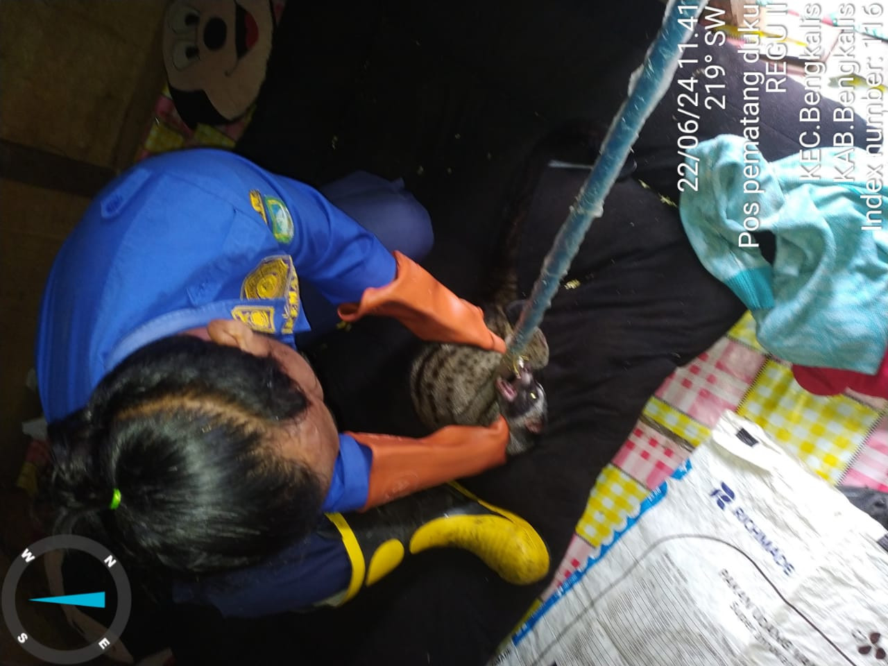 Bengkalis - Pos pematang duku menerima laporan dari warga adanya ular masuk dalam perkarangan warga (Pelapor Putri) yang beralamat di jalan utama penebal gg.tani, Desa/Kelurahan Penebal Kecamatan Bengkalis, Kamis (22/6/24).