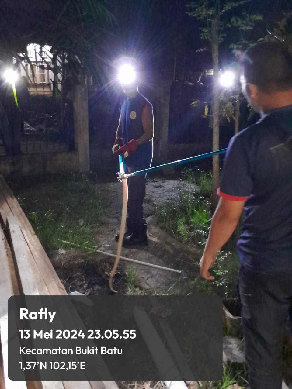 Bengkalis - Giat Petugas UPT Damkar Kecamatan Bukit Batu mengevakuasi (ular kobra) di Sungai Selari Kelurahan Sungai Pakning Kecamatan Bukit Batu Kabupaten Bengkalis, Senin (13/5/24). Alat yang digunakan dalam melakukan evakuasi 2 Stik ular dan Sarung tangan.