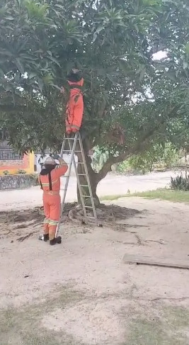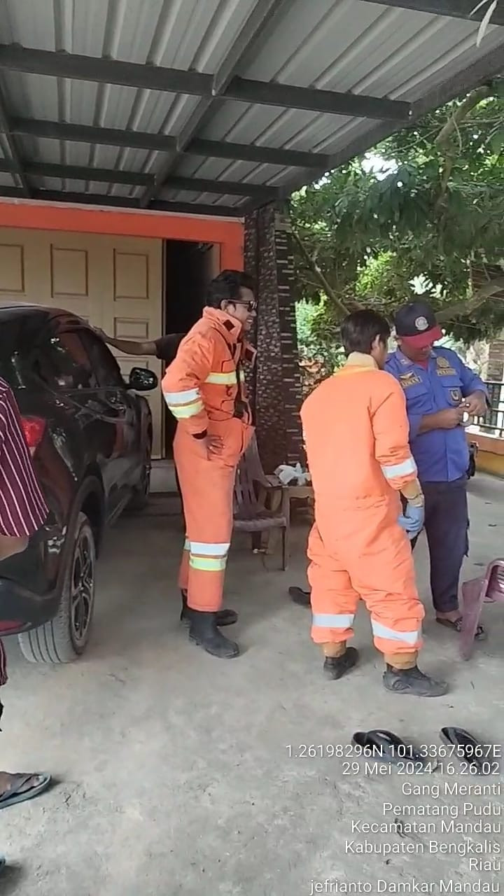 Setelah menerima laporan dari masyarakat, personil dari UPT Damkar Kecamatan Mandau langsung menuju ke lokasi kejadian untuk melakukan evakuasi, tim yang turun dalam kejadian tersebut Danton Jefrianto, Anggota regu 03