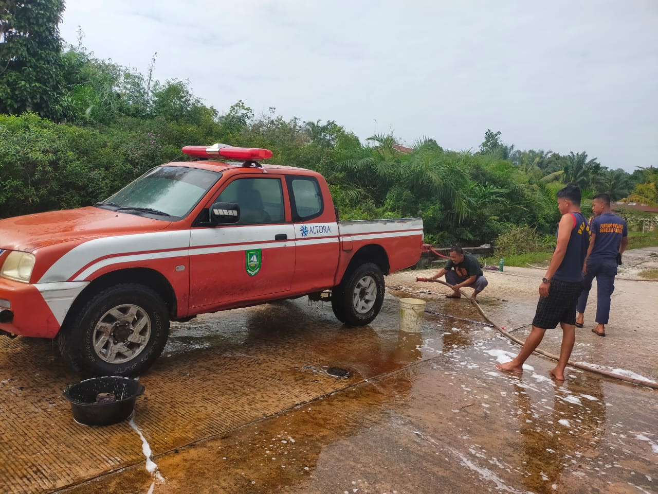Giat Upt Damkar Rupat melakukan Pembersihan Mobil dan Menganti air mobil Pto yang Baru
