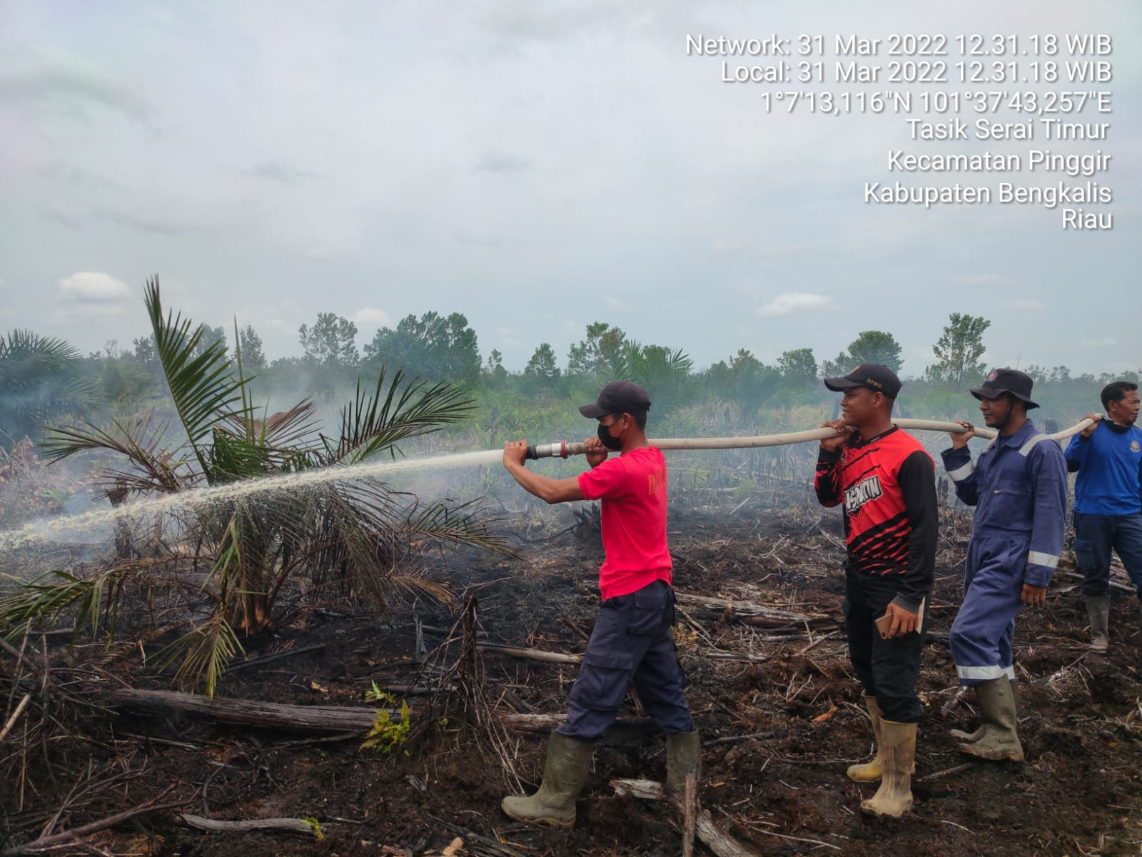 (31/03/2022) Pukul 07.30 Wib UPT.Damkar Kecamatan Pinggir telah melakukan Pendinginan lahan Hari ke-1 di Jalan Tobing soai Rt02/Rw 04, Dusun 2 Tanjung potai Desa Tasik tebing serai Kecamatan talang Mandau Kabupaten Bengkalis. Jenis Lahan yang terbakar gambut kering lokasi Gsk, Luas lahan yang terbakar kurang lebih 2 Hektar dan tim yang turun dalam kejadian tersebut Anggota regu 1 Damkar pinggir 9 orang,BPBD 4, TNI 4, polri 2, Rpk 4, Mpb 4 orang.