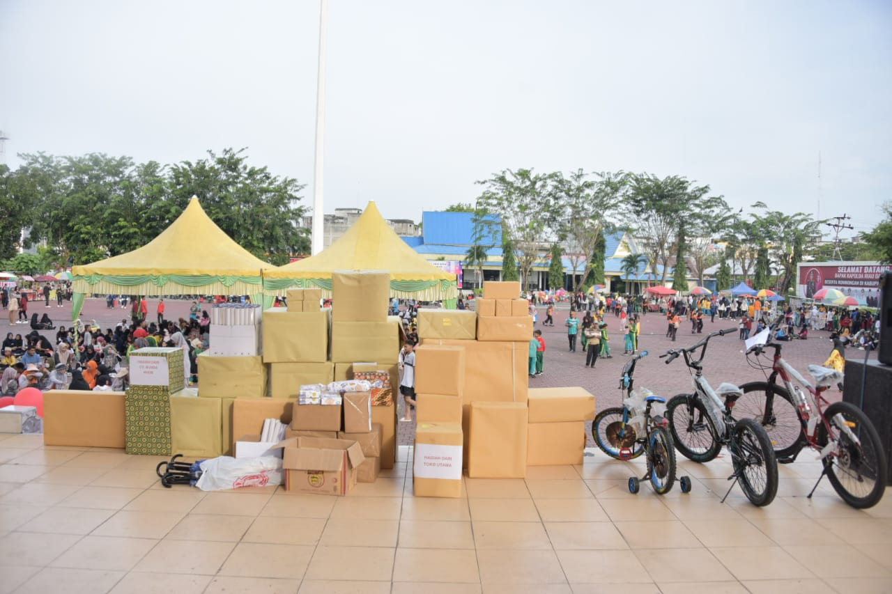 Turut hadir para anggota Forpimda diwakili, para pejabat di lingkungan Pemerintah Kabupaten, Basarnas Bengkalis, ketua DWP Kemenag Bengkalis, dan ribuan masyarakat yang memenuhi Lapangan Tugu.