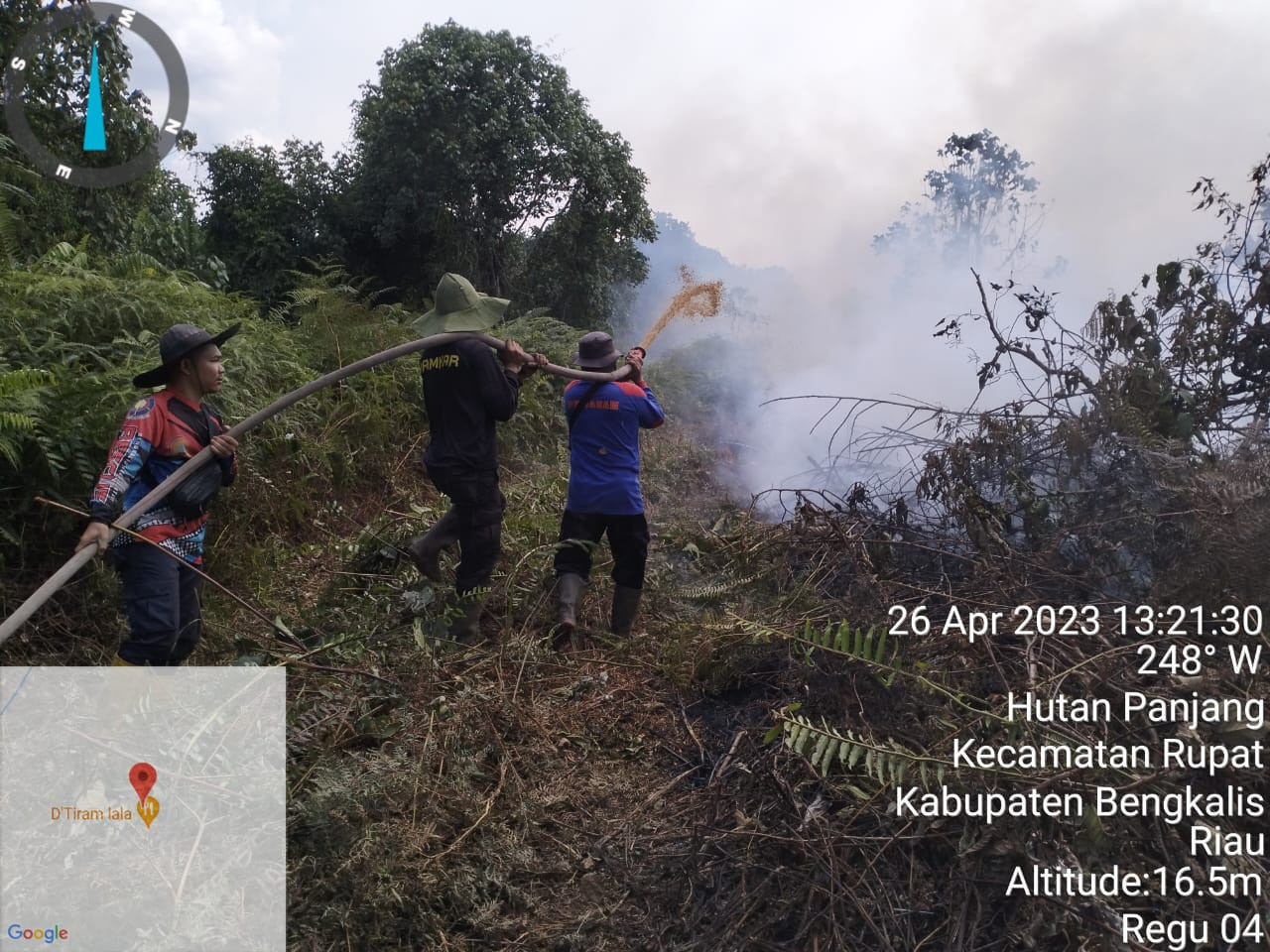 Bengkalis, Telah terjadi kebakaran lahan dan hutan (Karlahut) (11/04/23) di Desa Dungun Baru, Kecamatan Rupat. Penyebab kebakaran belum diketahui pasti namun luas wilayah hutan dan lahan yang terdampak diperkirakan sekitar -+ 8 Ha. Tim yang turun dalam kejadian tersebut Regu 04 Damkar Kecamatan Rupat, BPBD rupat, Danramil rupat, Polsek rupat, MPA dan Satpol PP.