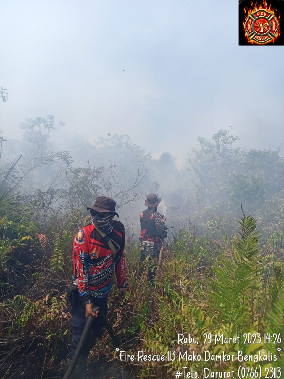 Bengkalis, Telah terjadi kebakaran lahan dan hutan (karhutla) (29/03/23) pukul 09.00 s/d Selesai di jalan Tampa Nama, Rt 01/RW 01, Dusun Tanjung Kudus, Desa Teluk Pambang, Kecamatan Bantan. Penyebab kebakaran belum diketahui pasti namun luas wilayah hutan dan lahan yang terdampak diperkirakan sekitar -/+ 11 ha. Tim yang turun dalam kejadian tersebut, Anggota Damkar Regu 04, MAKO Damkar Bengkalis, Anggota Damkar pos Bantan, BPBD Bengkalis, TNI, Polsek Bantan dan Masyarakat.