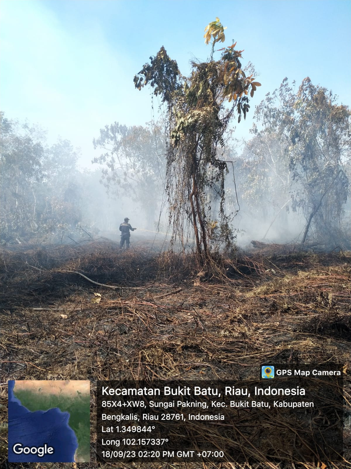 Bengkalis,Telah terjadi kebakaran lahan dan hutan (karhutla) pukul 08.30 Wib (18/09/23) di jalan Lingkar Rt 001/Rw 003, Desa Batang Duku, Kecamatan Bukit Batu. Penyebab kebakaran belum diketahui pasti namun luas wilayah hutan dan lahan yang terdampak diperkirakan sekitar -/+ 1 hektar. Tim yang turun dalam kejadian tersebut Anggota Damkar regu 03, Anggota polsek bukit batu, TNI, Kades batang duku, Satpol PP, Manggala agni, MPB, Masyarakat dan BPBD.