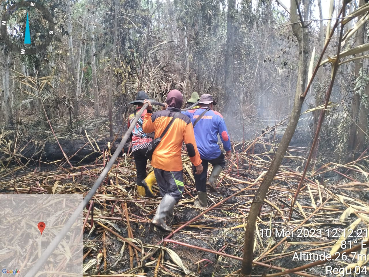 Bengkalis, Telah terjadi kebakaran lahan dan hutan (Karlahut) (10/04/23) pukul 8:30 Wib di jalan Tugu Rejo, Rt11/Rw 04, Desa Teluk lecah, Kecamatan Rupat. Penyebab kebakaran belum diketahui pasti namun luas wilayah hutan dan lahan yang terdampak diperkirakan sekitar -+ 7 Ha. Tim yang turun dalam kejadian tersebut Regu 04 Damkar Kecamatan Rupat, BPBD rupat, Danramil rupat, Polsek rupat, MPA dan Masyarakat.