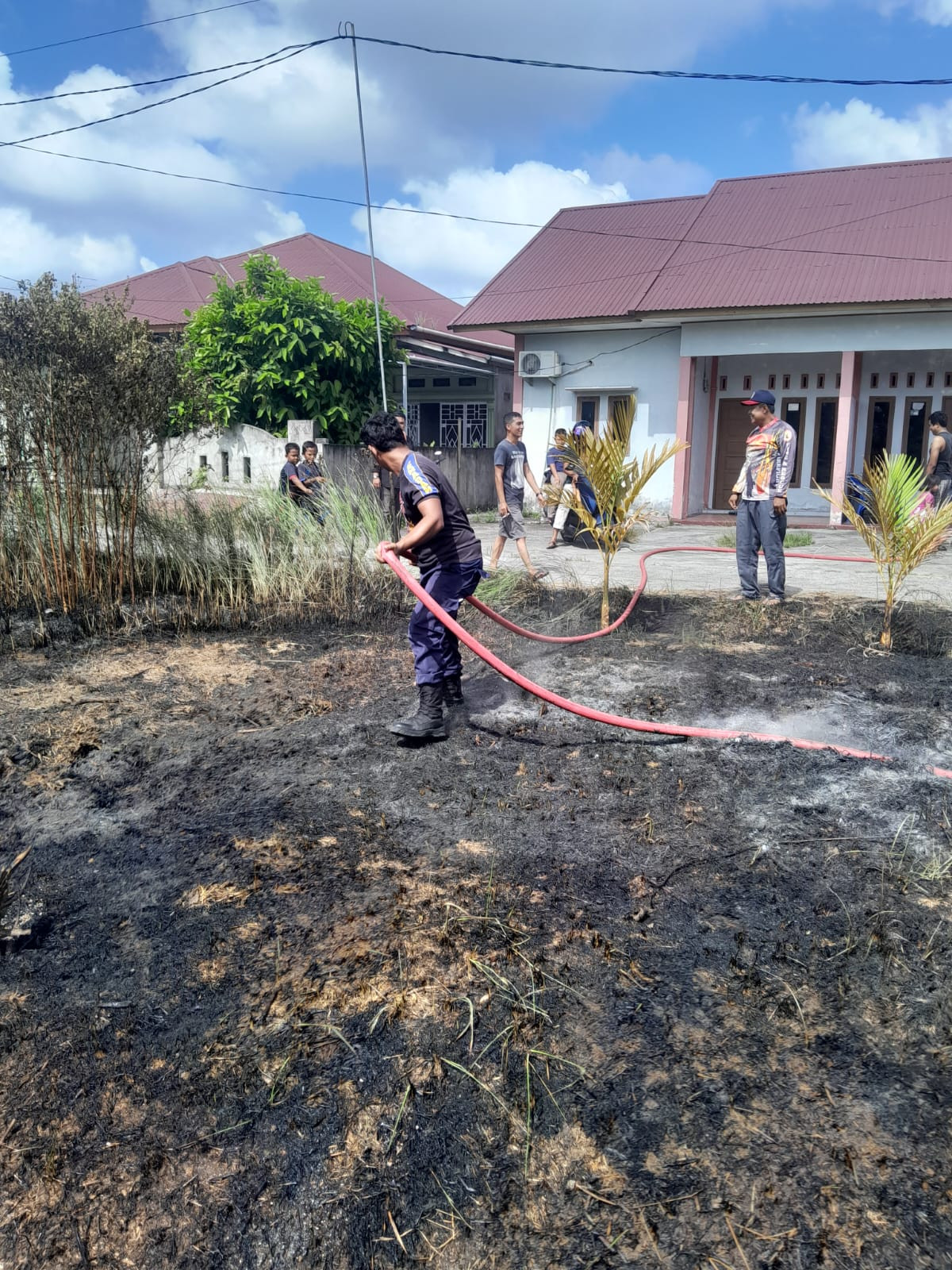Bengkalis - Giat Mako Damkar Bengkalis (Damkar) menerima laporan mengenai adanya kebakaran lahan dekat perumahan warga yang beralamat di jalan Pramuka Gg Musholah (Pelapor mulyadi) Kelurahan Desa Air Putih Kecamatan Bengkalis (27/1/24) Petugas jaga yang menerima laporan segera berangkat ketempat kejadian menggunakan 1 Unit Mobil Traga semua aman terkendali.