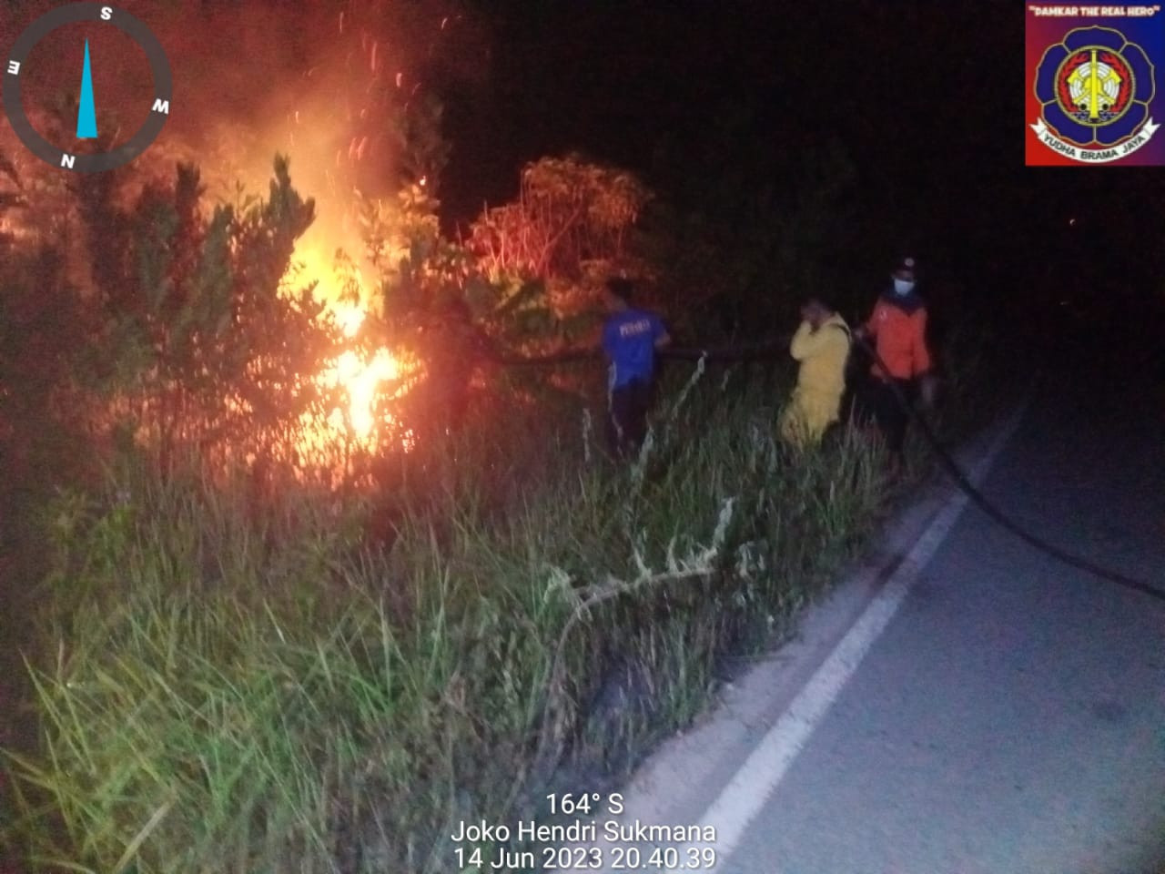 Bengkalis,Telah terjadi kebakaran lahan dan hutan (karhutla) pukul 20:10 Wib (14/06/23) di jalan lingkar Simpang Lima ke jalan Siak, Rt 02/Rw 04, Desa Petani Dusun Paungnapal, Kecamatan Bathin Solapan. Penyebab kebakaran belum diketahui pasti namun luas wilayah hutan dan lahan yang terdampak diperkirakan sekitar -/+ 05 ha. Tim yang turun dalam kejadian tersebut Anggota damkar regu 02, BPBD Bathin Solapan, Anggota Polsek mandau dan api berhasil di padam kan 21: 05 Wib.