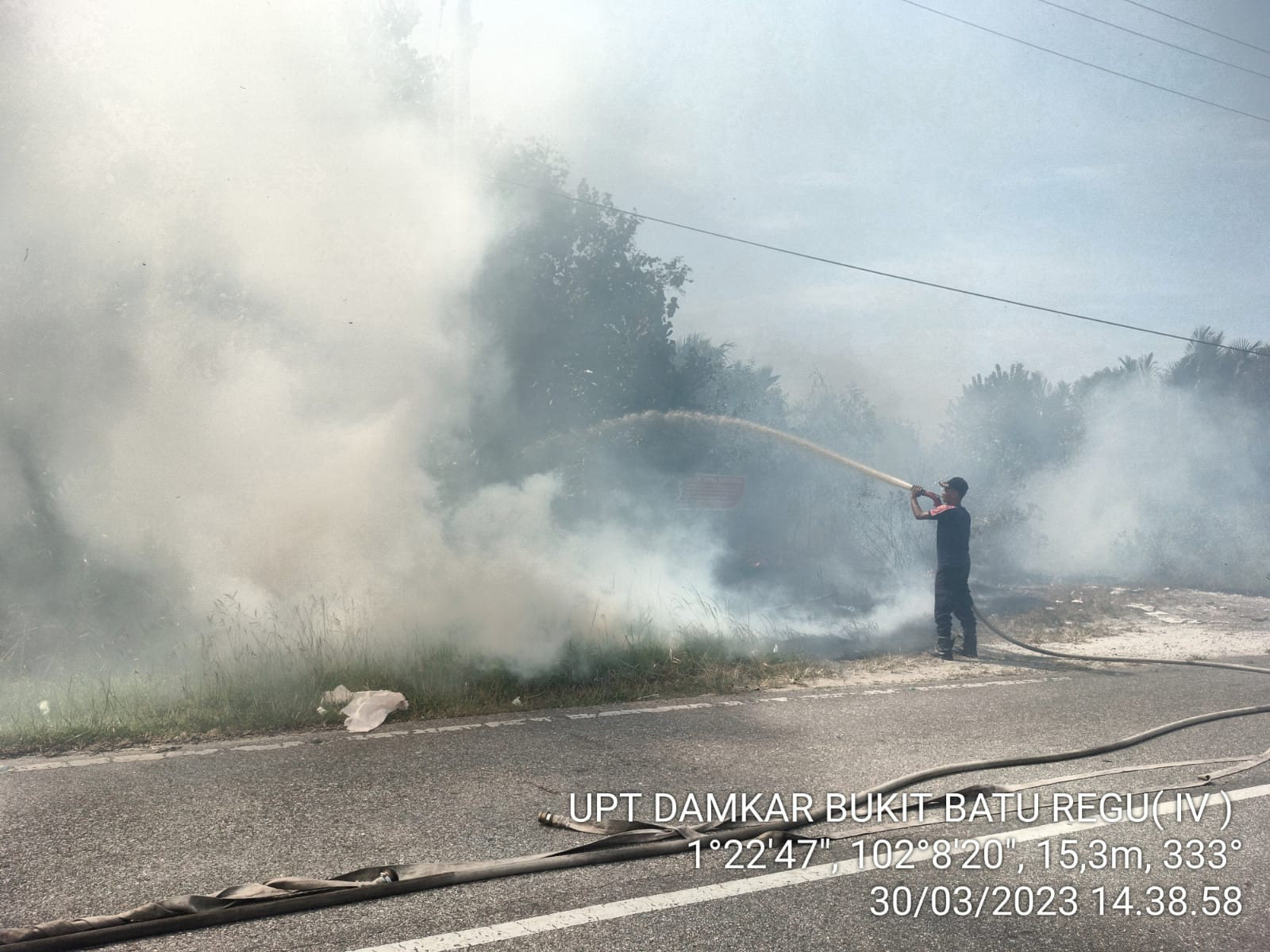 Bengkalis, Telah terjadi kebakaran lahan dan hutan (karhutla) Pemilik lahan PT Pertamina Sei Pakning (30/03/23) pukul 04:25 S/d Selesai di jalan Jend Sudirman Desa Sungai selari, Rt 01/Rw 01, Kecamatan Bukit Batu. Penyebab kebakaran belum diketahui pasti namun luas wilayah hutan dan lahan yang terdampak diperkirakan sekitar -/+1/2 ha. Tim yang turun dalam kejadian tersebut Anggota Damkar Regu IV, Aparat Desa Sungai Selri dan Fire Pertamina Sungai Pakning.