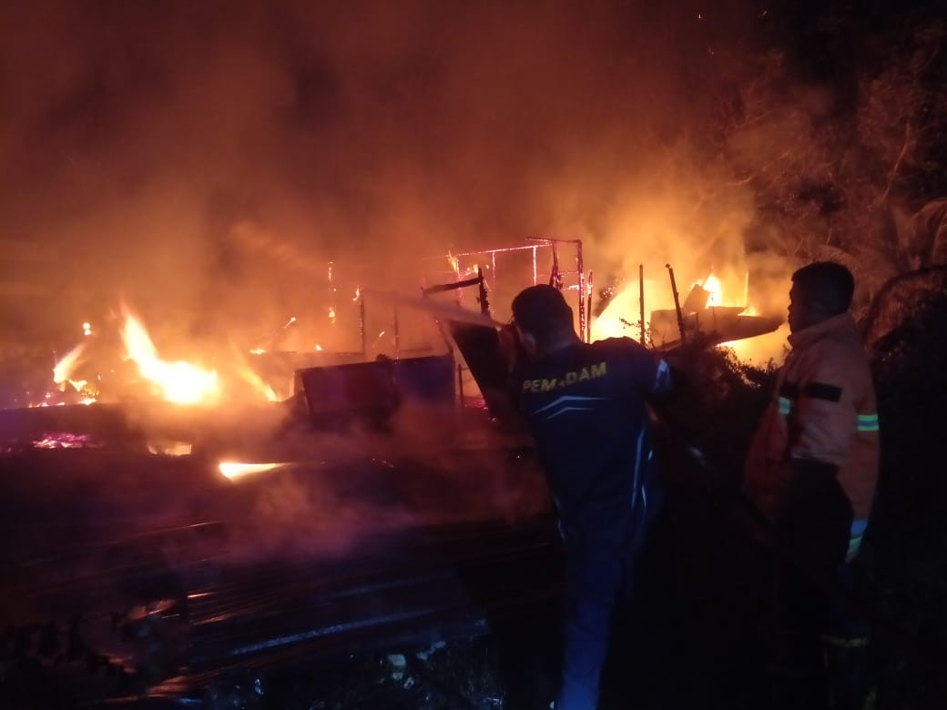 Bengkalis, Telah terjadi kebakaran satu buah rumah dan satu buah warung (Dahlan 71) dan (Ilis 60) pukul 03:00 Wib (12/04/23) di jalan Mesjid, Desa Kelapapati, Kecamatan Bengkalis. Penyebab kebakaran di duga arus pendek listrik, api Dapat di padamkan pukul 04.45 Wib. Tim yang turun dalam kejadian tersebut Anggota Damkar regu 03, Komandan Regu Fitri Agus.