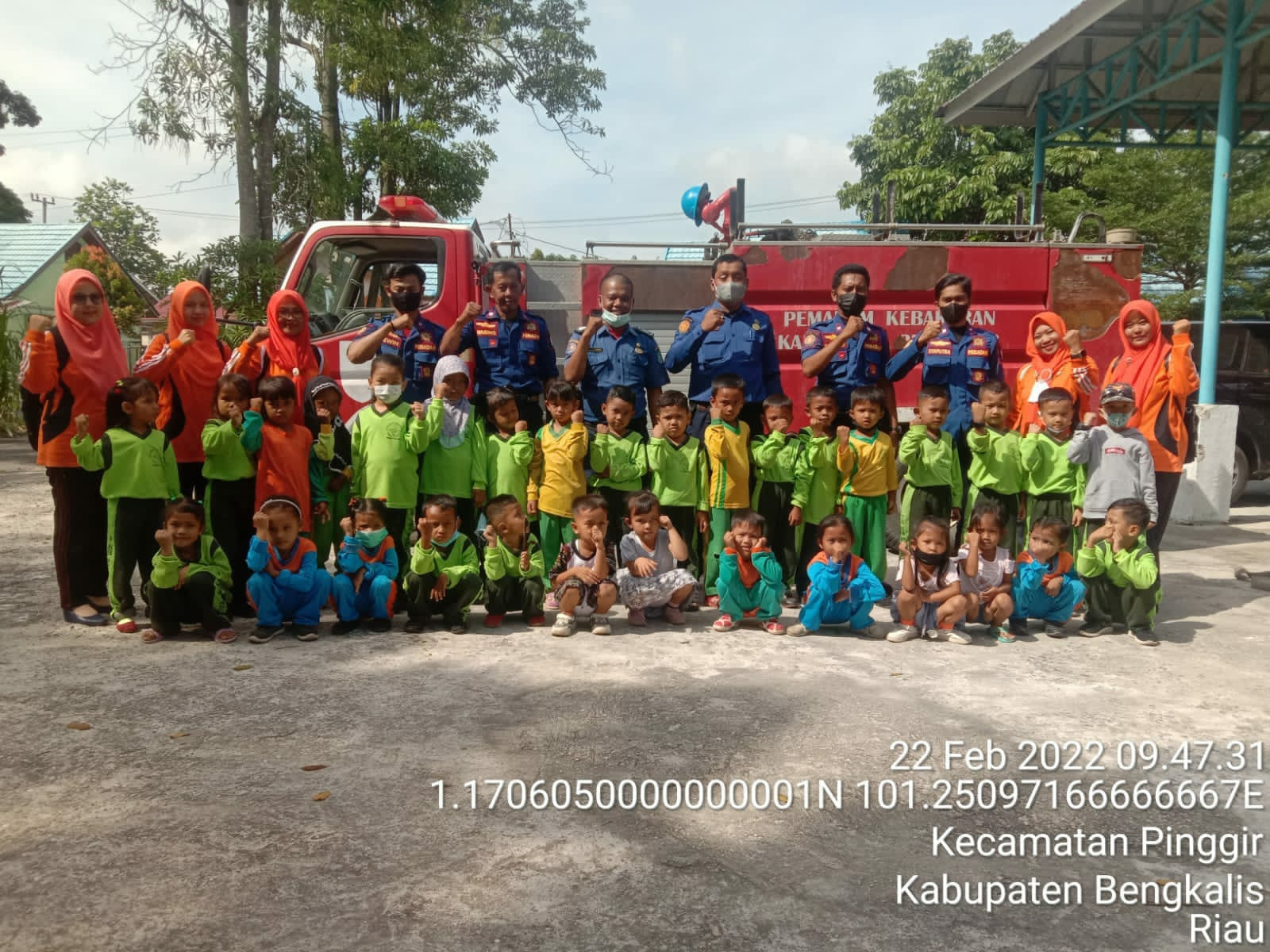 Selasa (22/02/2022) Tk Permata Bunda berkesempatan berkunjung di UPT.Damkar Kecamatan Pinggir. Kegiatan ini dilakukan untuk memperkenalkan kepada anak-anak mengenai kegiatan yang dilakukan oleh para petugas Pemadam Kebakaran. Anak-anak diajak di beri penjelasan mengenai penyebab terjadinya kebakaran, cara memadamkan api, nama kendaraan yang digunakan oleh Pemadam Kebakaran serta nomor telepon yang dapat dihubungi di saat terjadinya kebakaran. Selain itu, anak-anak juga dikenalkan dengan alat-alat atau perlengkapan yang digunakan pada saat memadamkan api.