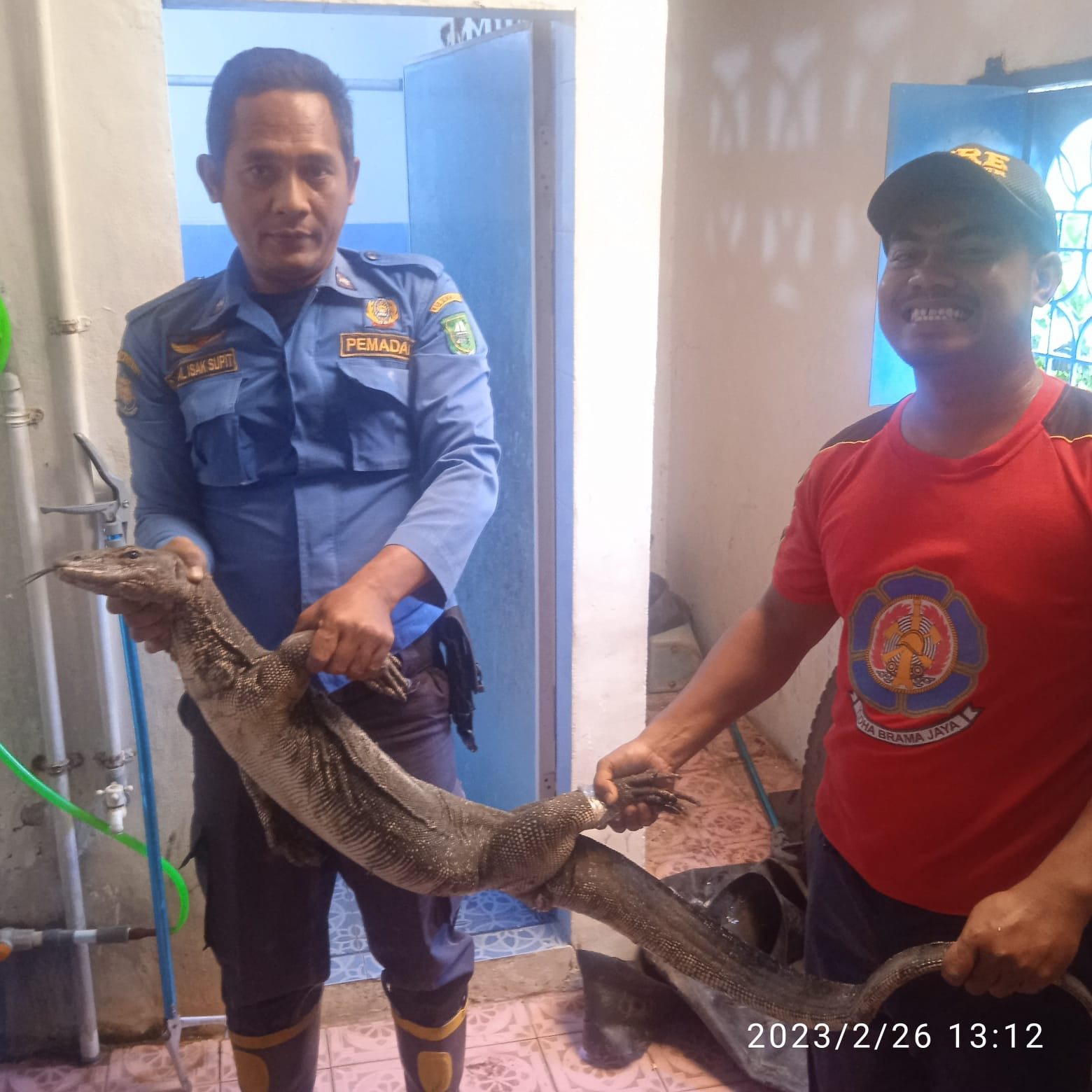 Minggu (26/02/2023) Pukul 13:10 Wib, MAKO Damkar Bengkalis Kecamatan Bengkalis mengevakuasi Biawak di jalan Yos Sudarso Desa kelurahan kota. Petugas Damkar yang telah menerima laporan langsung melakukan evakuasi Fire & Rescue Regu 01 Bengkalis.