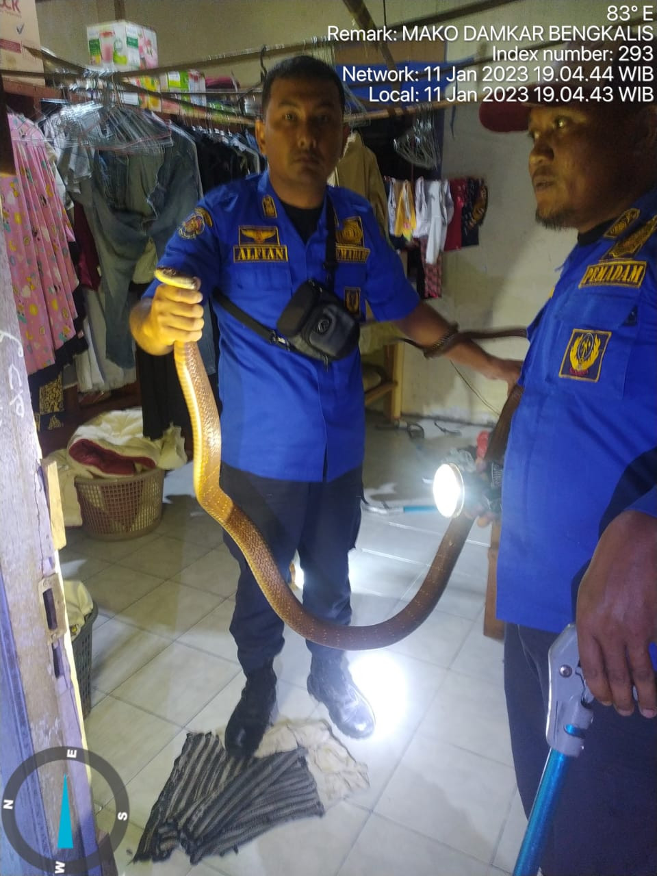 Rabu (11/01/2023) Pukul 18.55 Wib, MAKO Damkar Bengkalis Kecamatan Bengkalis mengevakuasi seekor ular Manau di jalan Kelapapati Darat Gg. Gaharu Desa Kelapapati. Petugas Damkar yang telah menerima laporan langsung melakukan evakuasi Fire & Rescue Regu 02 Bengkalis.