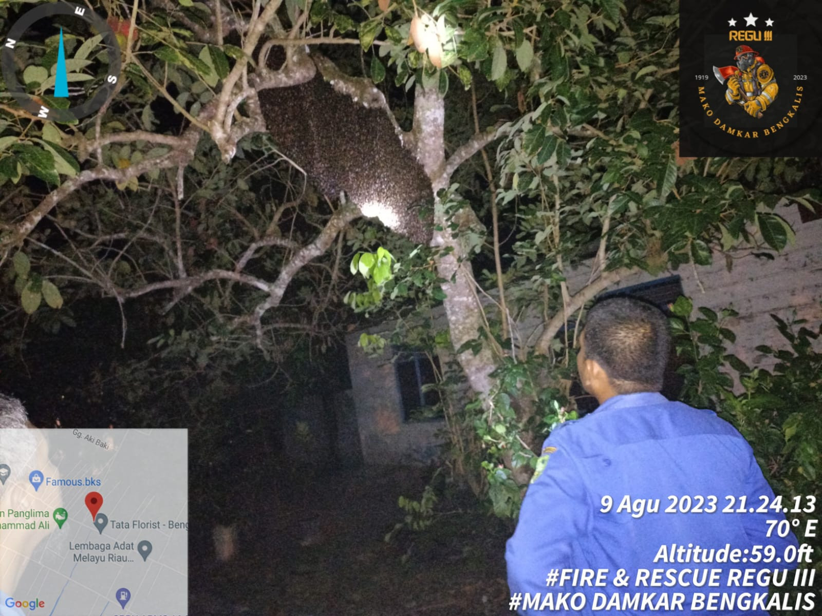 Bengkalis, Mako Damkar Bengkalis Kecamatan Bengkalis melakukan evakuasi Tawon (09/08/23) pukul 21:10 s/d Wib di jalan Pramuka Desa Air putih. Tim yang turun dalam kejadian tersebut Fire & Rescue Regu 03 Bengkalis.