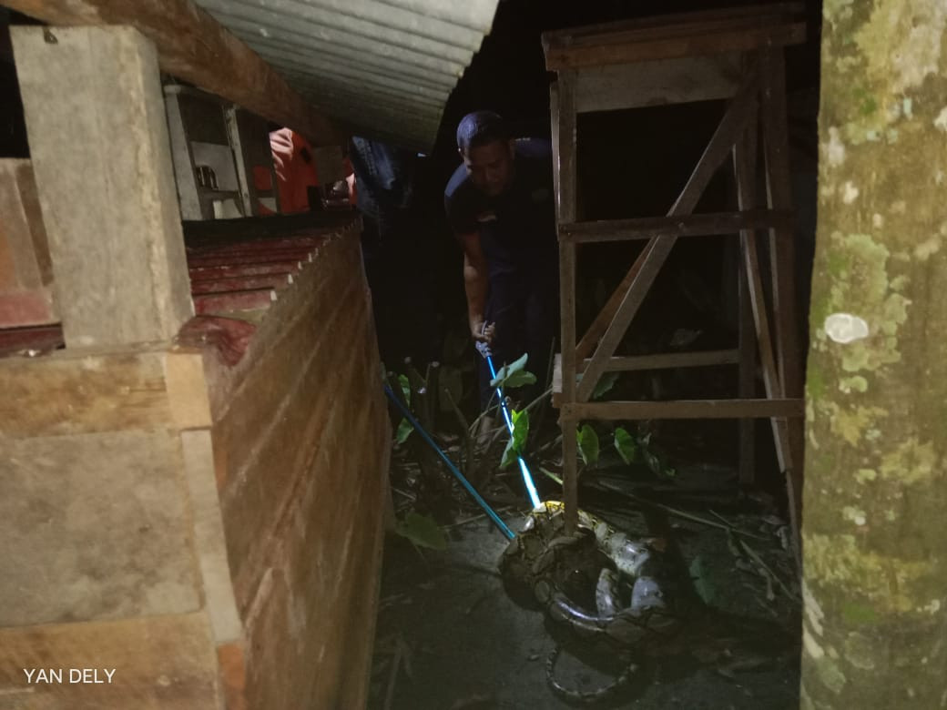 Bengkalis - Markas Komando Pemadam Kebakaran (Mako Damkar) di jalan Jendral Ahmad Yani Kelurahan Bengkalis Kota Kecamatan Bengkalis pada Minggu (20/12/23) melakukan evakuasi Ular (Sawa) di jalan Utama sungai Alam ( Dekat Tk Pembina) Desa Sungai Alam. Tim yang turun dalam kejadian tersebut Fire & Rescue Regu 3.