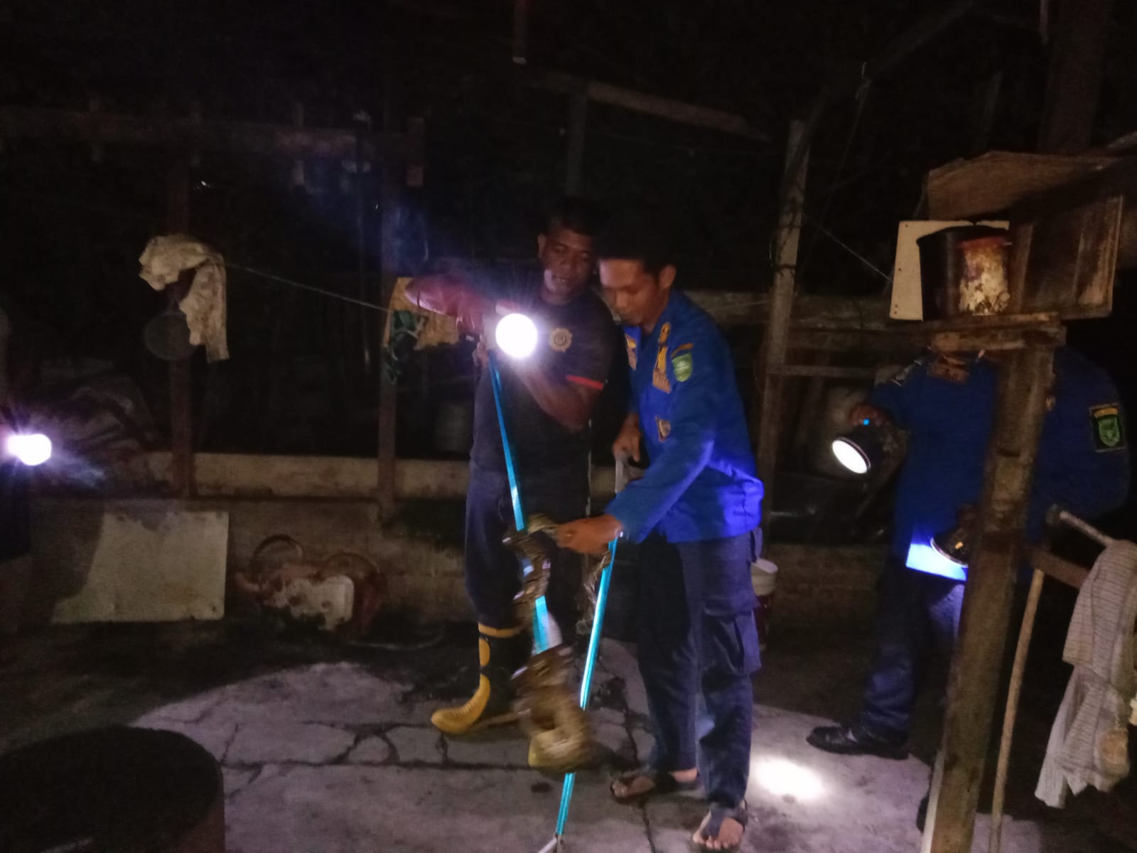Bengkalis, (23/08/23) Mako Damkar Bengkalis evakuasi Ular pukul 02:00 Wib di jalan Bengkalis Gg kebun kapas IV. Tim yang turun dalam kejadian tersebut Anggota Damkar regu 3 Komandan regu Fitri Agus.