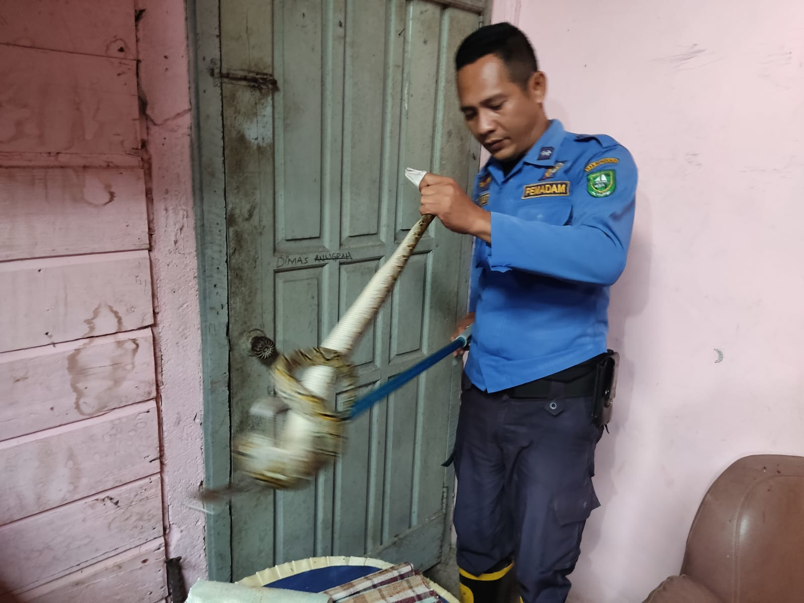 Bengkalis, Rabu 07 Desemeber 2022- Mako Damkar Bengkalis Kecamatan Bengkalis telah mengevakuasi ular sawa di rumah warga (07/12/2022) dijalan pembangunan, Desa kelapapati Kecamatan Bengkalis. Petugas Damkar yang telah menerima laporan langsung melakukan evakuasi Heri Susanto, Tim yang melakukan Evakuasi Fire & Rescue Regu 01 Bengkalis.