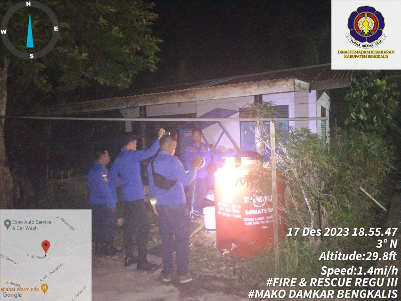 Bengkalis-Markas Komando Pemadam Kebakaran (Mako Damkar) di jalan Jendral Ahmad Yani Kelurahan Bengkalis Kota Kecamatan Bengkalis pada Minggu (17/12/23) melakukan evakuasi Ular Tedung di jalan Almuslihun, Desa Wonosari Kecamatan Bengkalis. Tim yang turun dalam kejadian tersebut Fire & Rescue Regu 3.