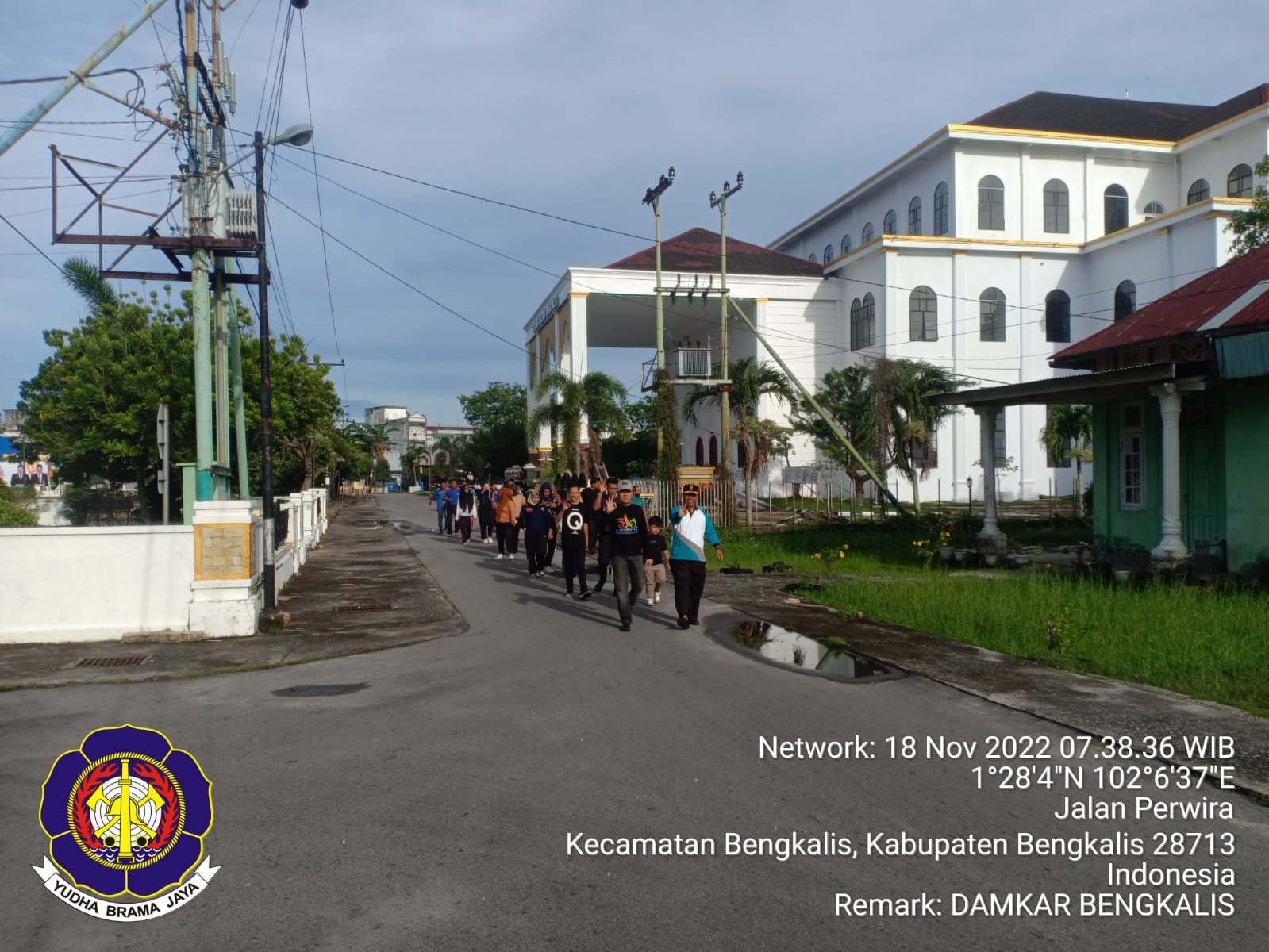 Bengkalis, Jum'at 18 November 2022-MAKO Damkar Bengkalis Kecamatan Bengkalis melakukan gotoroyong bersama dan jalan sehat.