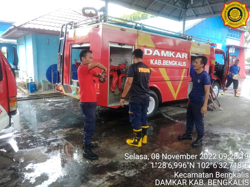 Bengkalis, Selasa 08 November 2022. Pukul 09.30 Wib Mako Damkar Bengkalis telah melakukan Kegiatan pemeliharaan alat-alat armada dan pembersihan lingkungan Mako Damkar Bengkalis.