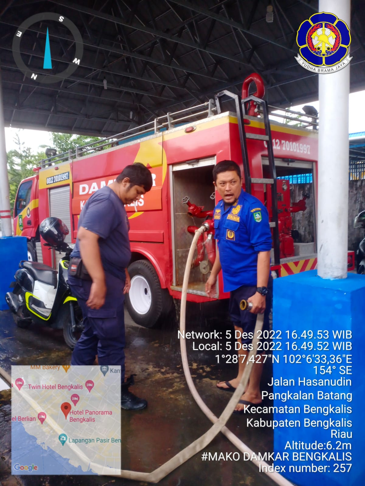 Bengkalis,Senin 05 Desember 2022- Mako Damkar Bengkalis Kecamatan Bengkalis melakukan pemeliharaan alat-alat armada & pembersihan lingkungan Mako Damkar bengkalis.