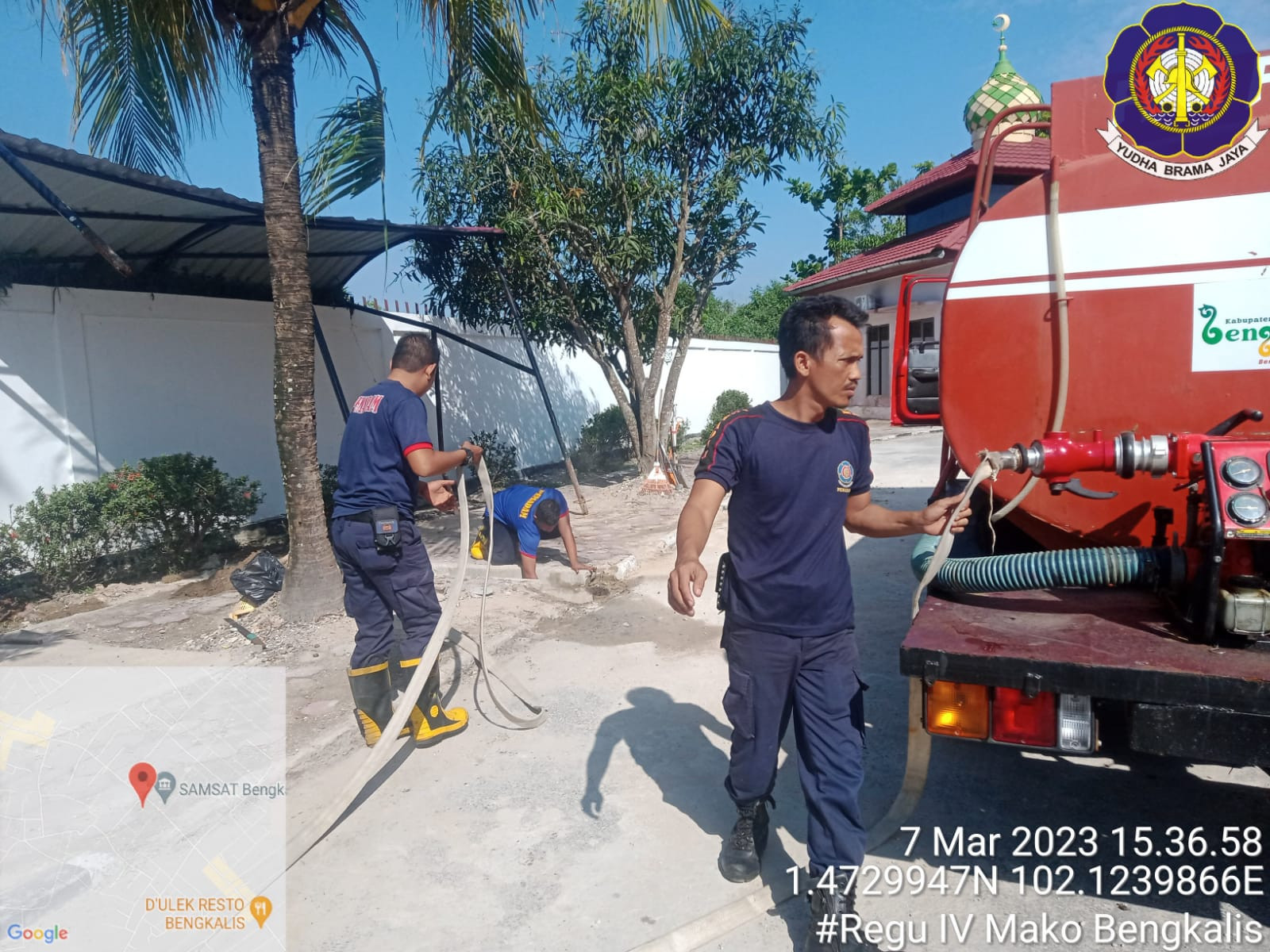 Bengkalis, Mako Damkar Bengkalis Kecamatan Bengkalis Membantu Melakukan Penyemprotan Parit Tersumbat (07/03/2023) Pukul 15.38 s/d Selesai. Petugas damkar yang telah menerima laporan langsung melakukan evakuasi, Fire & Rescue Regu 04 Bengkalis langsung meluncur ke tkp.
