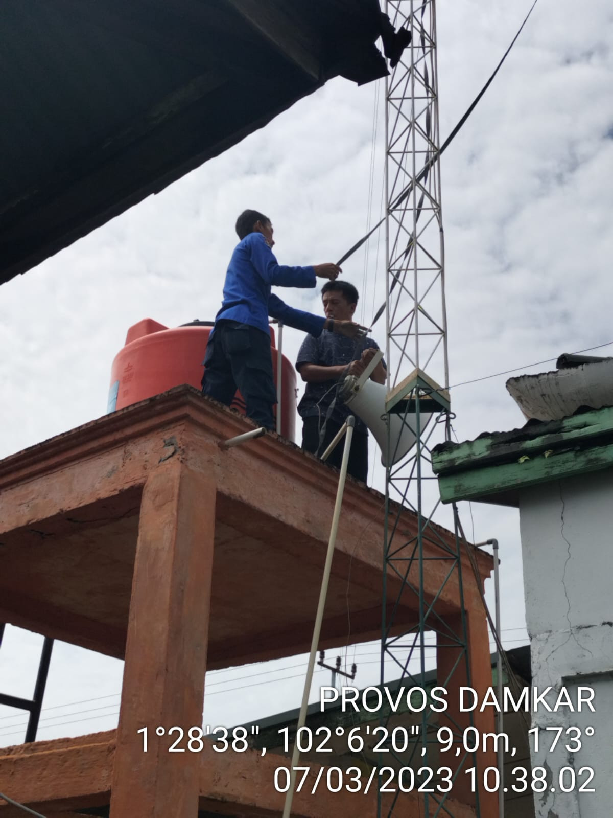 Bengkalis, Mako Damkar Bengkalis Kecamatan Bengkalis Membantu Melakukan Pengantian Toa Mesjid Rhaudathuljannah (07/03/2023) Pukul 10.00 s/d 11.00 Wib dijalan Damon. Petugas damkar yang telah menerima laporan langsung melakukan evakuasi, Tim Damkar Fire & Rescue Regu 04 Bengkalis langsung meluncur ke tkp.