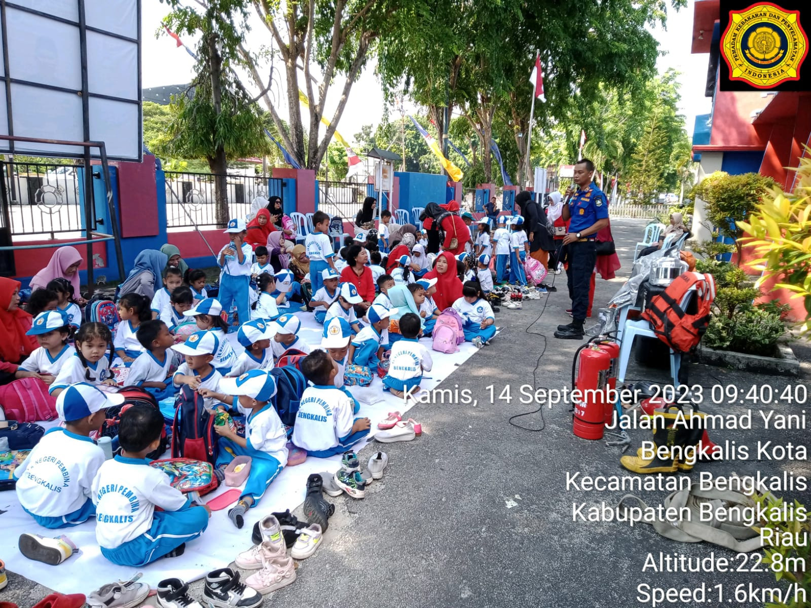 Bengkalis-Markas Komando Pemadam Kebakaran (Mako Damkar) di jalan Jendral Ahmad Yani Kelurahan Bengkalis Kota Kecamatan Bengkalis pada Kamis (29/09/23) menerima kunjungan anak-anak TK PEMBINA. Acara dimulai dari pengenalan profesi damkar oleh petugas damkar, Materi yang disampaikan antara lain pengenalan Alat Perlindungan Diri yang digunakan, peralatan dan perlengkapan yang dibawa saat bertugas.