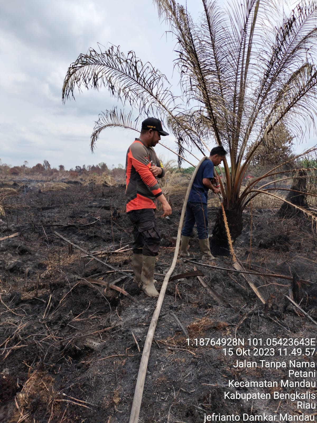 Begkalis, Melanjutkan pemadaman Karlahut pukul 08:15 wib (15/10/2023) yang beralamat di Desa Buluh Manis Luas terbakar 5 hektar.Tim yang turun dalam kejadian tersebut Danru jefrianto Anggota regu 02, Polisi, TNI, Manggala agni, BPBD Batshol.
