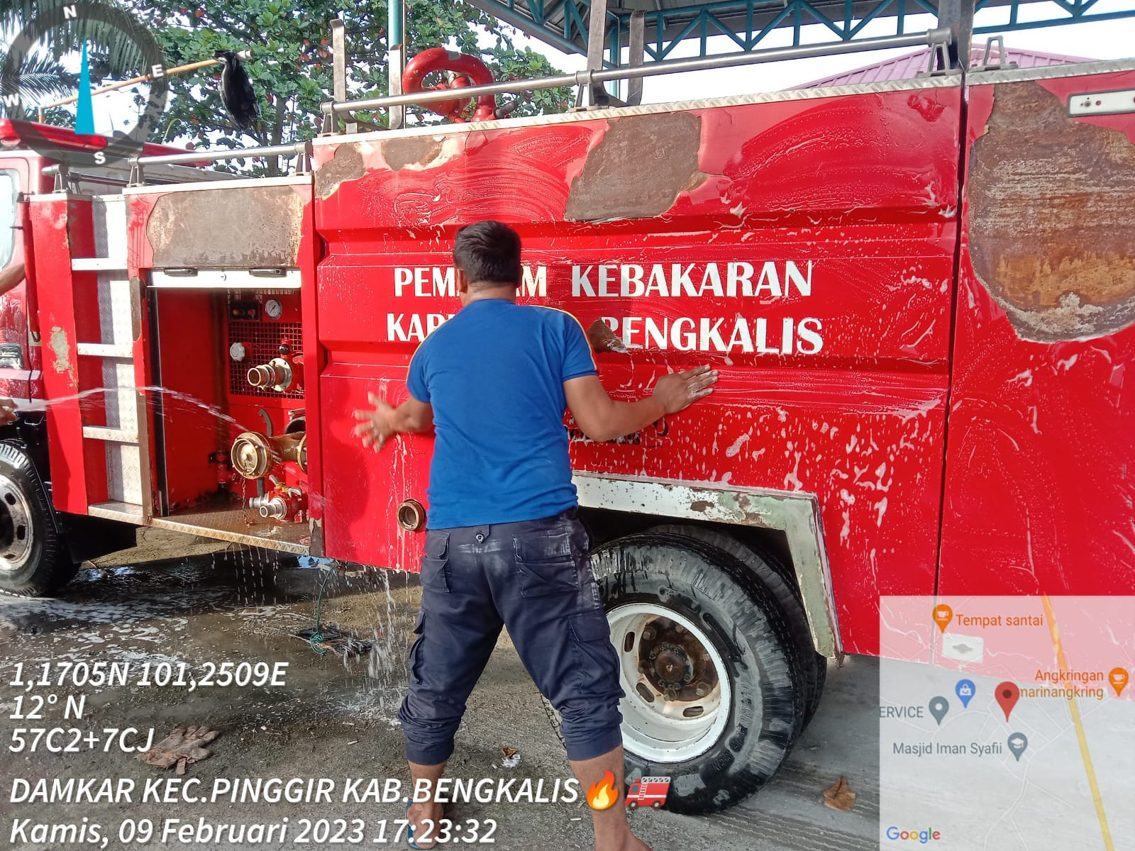 Begkalis, Giat anggota Pemeliharaan alat2 & Armada UPT Damkar Kecamatan Pinggir pada hari Rabu (09/02/2023) mulai pukul 17:12 Wib.