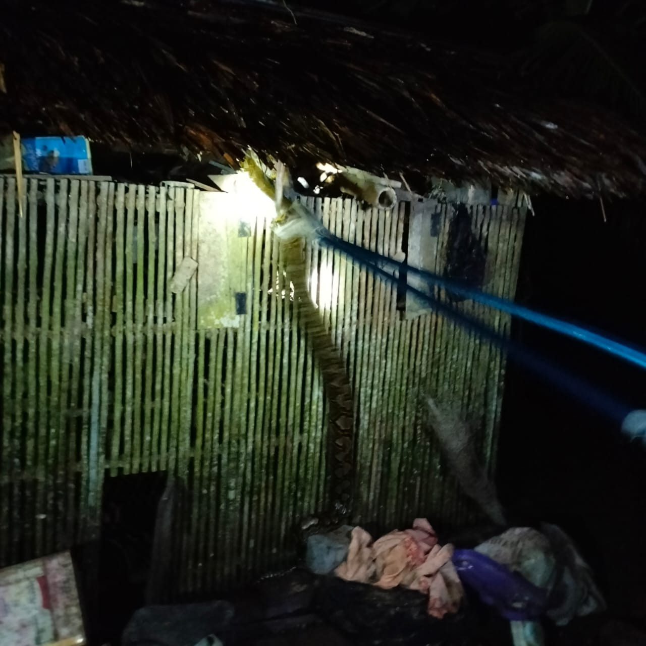 Bengkalis - Petugas Pos kecamatan Bantan Regu Fire & Rescue Regu 04 Bengkalis mendapat laporan adanya ular sawa di lingkungan rumah warga (sodikin) yang beralamat Beringin Baru Desa Selatbaru Kecamatan Bantan (4/1/24). Unit yang digunakan dalam melakukan evakuasi yaitu Stick ular, Mobil PICK UP.