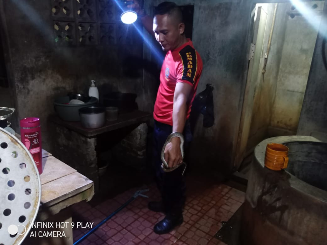 Senin(26/09/2022) Pukul 01.40 Wib, Pos Damkar Bengkalis mengevakuasi seekor ular di Jalan rumbia Kelurahan kota. Petugas Damkar yang telah menerima laporan langsung melakukan evakuasi, tim yang turun dalam kejadian tersebut Fire & Rescue Regu 01 Bengkalis.
